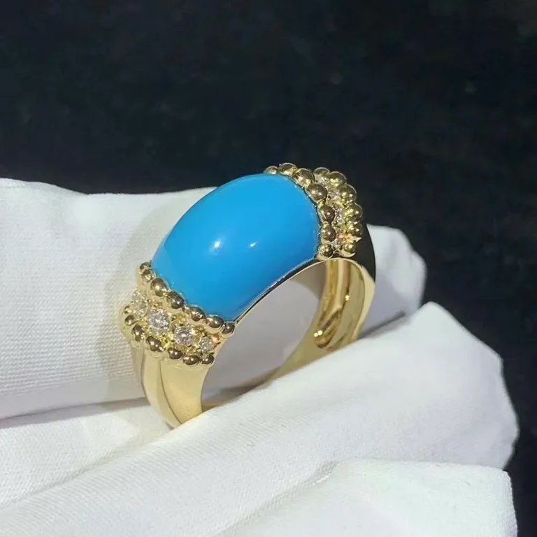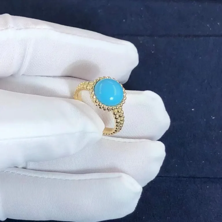 This Van Cleef & Arpels Perlée Couleurs Turquoise Ring in 18K yellow gold showcases the Maison’s joyful elegance in its purest form. A vivid turquoise cabochon sits at the center, glowing with smooth, even color, while the signature beaded gold silhouette adds texture, dimension, and unmistakable VCA charm. Radiant, playful, and refined, it’s a timeless piece that brings a fresh pop of color to any collection. Collection: VCA Perlée Couleurs Ring Metal: 18k yellow gold (Weight approx 9.5g in size 7) Gemstones: 1 turquoise Motif Width: 12.75mm Band Width: 4mm Whatsapp: +1 262-806-8175 Please contact LEXGA jewelry to get the […]