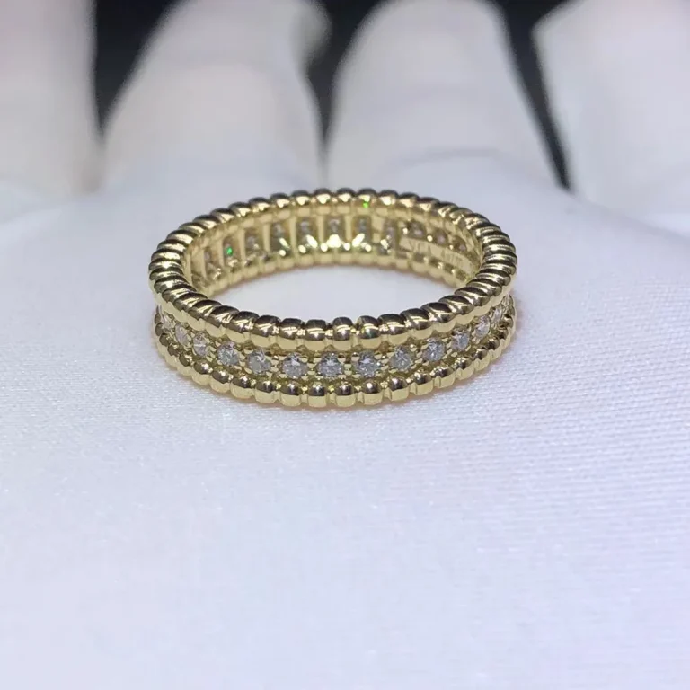 Crafted in radiant 18k yellow gold, the Van Cleef & Arpels Perlée Signature Ring showcases the Maison’s iconic beaded edges framing a polished, mirror-finish band. The engraved “Van Cleef & Arpels” signature adds a distinctive touch of heritage and elegance. Bold yet refined, this timeless design is perfect worn alone as a statement or stacked for a modern, layered look. Collection: VCA Perlée Signature Ring Metal: 18k Yellow gold (Weight approx 8.5g in size 7) Band Width: 8mm REFERENCE: VCARO3Y600 WhatsApp: +1 262-806-8175 Please contact LEXGA jewelry to get the factory direct wholesale price The Perlée signature jewelry creations are […]