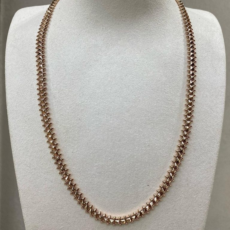 This Clash de Cartier small model flexible long necklace embodies a perfect balance of boldness and refinement. Crafted in 18k rose gold, the design features the collection’s signature studded motif, offering both structure and fluidity. Measuring 6.5mm in width and 90cm in length, the flexible construction drapes elegantly around the neck, showcasing Cartier’s mastery of contrast — where edgy geometry meets timeless sophistication. Metal: 18k rose gold (Weight is about 98g) Length: 90 cm (Can be customized any size) Band Width: 6.4mm Ref. N7424524 Collection: Clash de Cartier Flexible Necklace WhatsApp: +1 262-806-8175 Please contact Lexga to get the factory […]