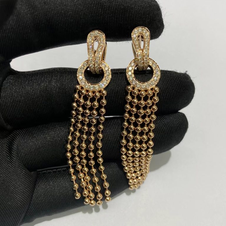 Exuding sophistication and fluid elegance, these Cartier Agrafe 18k Pink Gold Diamond Tassel Earrings embody the artistry of refined design. The pavé diamond clasp, crafted in a graceful agrafe motif, catches the light with dazzling brilliance, while multiple rows of delicate pink gold bead chains cascade effortlessly below. The movement of each strand adds a sensual rhythm, enhancing their radiant charm. Luxurious and contemporary, these earrings balance sparkle and softness—perfect for accentuating any look with feminine grace and understated opulence. Metal: 18k pink gold (Weight is about 22.2g) Diamonds: 84 brilliant-cut diamonds 1.24ct Earring Size: 52mm (length) x 14mm (width) […]