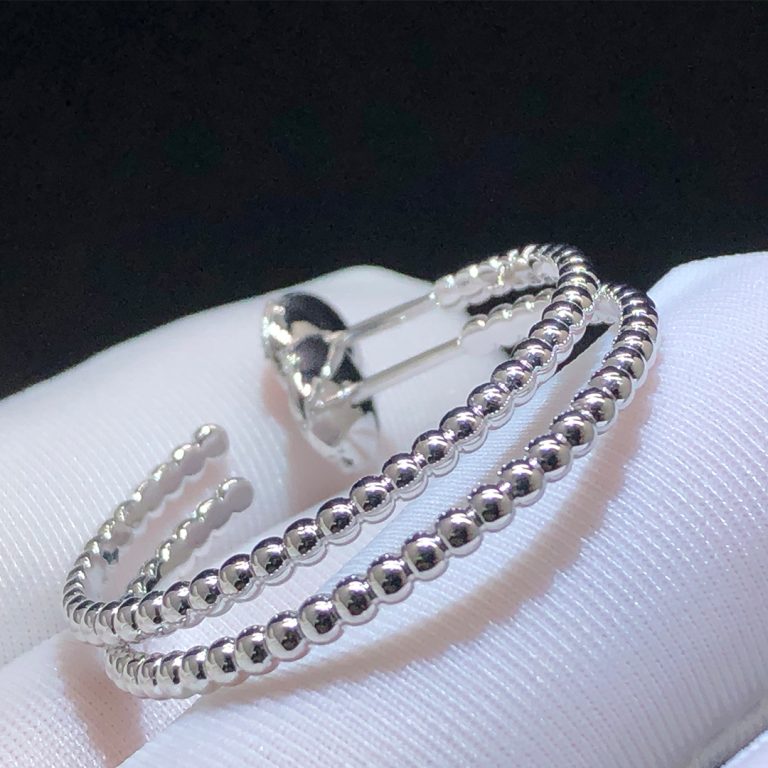 Delicately crafted in 18k white gold, these Van Cleef & Arpels Perlée Pearls of Gold Small Hoop Earrings showcase the Maison’s iconic beaded motif. Perfectly polished gold spheres form graceful hoops, catching the light with every movement and creating a refined, luminous glow. Minimal yet unmistakably elegant, the design balances modern simplicity with timeless craftsmanship—ideal for effortless daily wear or subtle layering with other Perlée creations. Collection: VCA Perlée Pearls of Gold Small Hoop Earrings Metal: 18k white gold (Weight approx 9.2 g) Earring Diameter: 32 mm Band width: 2 mm REFERENCE: VCARN9PM00 Clasp: Stud system, large model in 18K […]