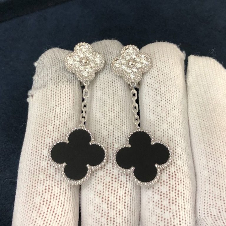 These are Van Cleef & Arpels Vintage Alhambra Diamond 18k White Gold Earrings. They’re made of 18K white gold and feature a clover motif set with 24 round brilliant cut diamonds, totaling 0.96 carats. Collection: VCA Vintage Alhambra Earrings Metal: 18k white gold (Weight arrpox 9.5g) Diamonds: 24 diamonds 0.96ct Motif Size: 15mm x 15mm REFERENCE: VCARA44600 Clasp: Clip back with detachable stem in 18K white gold, option to remove or reposition the stem LEXGA jewelry a professional jewelry & watch Manufacturer in the hub of jewelry production – Shenzhen City, China. We offer 1:1 top quality best replica jewelry […]
