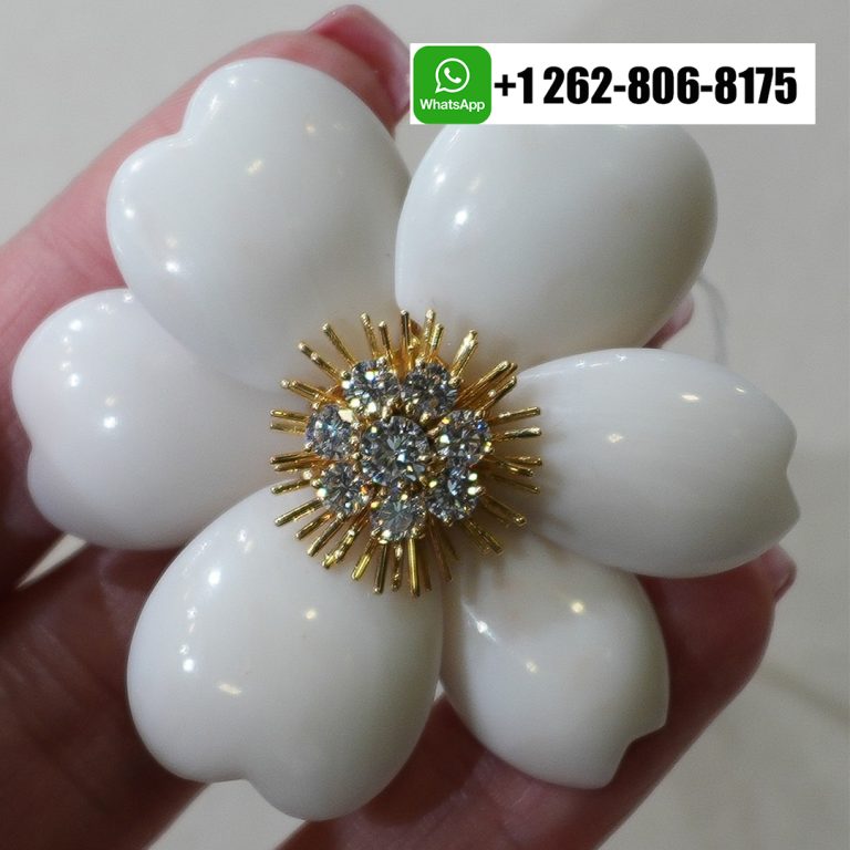 An exquisite and timeless creation by Van Cleef & Arpels, this Van Cleef & Arpels Rose De Noel White Coral Flower Brooch Large Model is crafted in rich 18K yellow gold and adorned with delicately carved white coral petals. Inspired by the quiet beauty of a winter bloom, the floral design radiates refined elegance and showcases the Maison’s exceptional artistry and enduring sophistication. Collection: VCA Rose De Noel Coral Brooch Metal: 18k yellow gold (Weight approx 31.5 g) Diamonds: 8 diamonds totaling 1.62ct Gemstones: 6 white coral Size: 50mm x 54mm LEXGA jewelry a professional jewelry & watch Manufacturer in […]