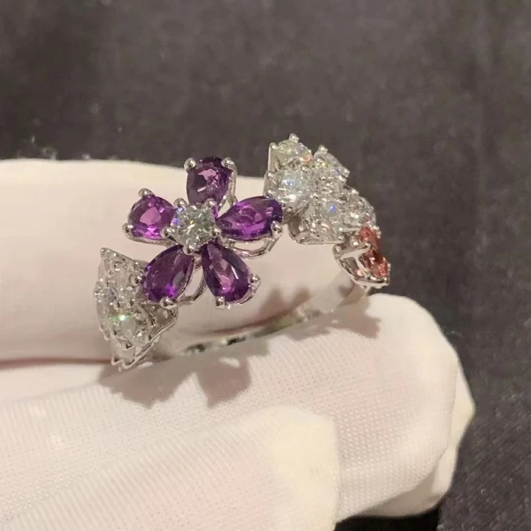 This Van Cleef & Arpels Folie de Pres Diamond and Sapphire 18k White Gold Flower High Jewelry Ring is an absolute showstopper—radiating with brilliant diamonds of exceptional quality, complemented by vibrant sapphires and soft mauve sapphires. Together, these exquisite gemstones evoke the delicate charm and vivid beauty of wildflowers in full bloom. To celebrate the beauty of wildflowers, Van Cleef & Arpels has created the lively and elegant VCA Folie des Prés High Jewelry collection. Adorned with round and pear-shaped gemstones, it reproduces the diversity and harmony of nature. Collection: Van Cleef & Arpels VCA Folie de Pres High Jewelry […]