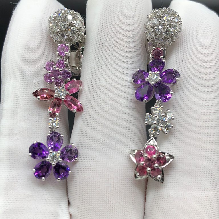 Exquisitely feminine and poetic, these Van Cleef & Arpels Folie des Prés Pink and Mauve Sapphires high jewelry earrings capture the Maison’s love for nature through a graceful cascade of floral motifs. Crafted in 18k white gold, each earring features a harmonious arrangement of pink and mauve sapphires, delicately cut into petal shapes that bloom along the ear. Brilliant round diamonds accent the centers of the flowers and the pavé-set upper dome, adding refined sparkle and depth. The asymmetrical, garden-inspired composition creates fluid movement and a soft play of color, evoking wildflowers gently dancing in the breeze. Elegant yet joyful, […]