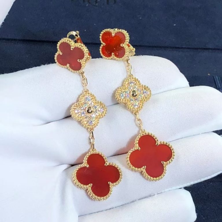 These Van Cleef & Arpels Sweet Alhambra Carnelian earstuds Earrings are exquisitely crafted in warm 18k rose gold, featuring the iconic four-leaf clover motif. Each stud is set with rich red carnelian, admired for its smooth, glossy finish, and framed by the Maison’s signature beaded gold edging for a refined, timeless appeal. Collection: VCA Sweet Alhambra Earstuds Metal: 18k rose gold (Weight approx 3.2g) Gemstones: 2 carnelian Motif Size: 9mm Clasp: Stud system, large model in 18K rose gold REFERENCE: VCARN6BO00 LEXGA jewelry a professional jewelry & watch Manufacturer in the hub of jewelry production – Shenzhen City, China. We […]