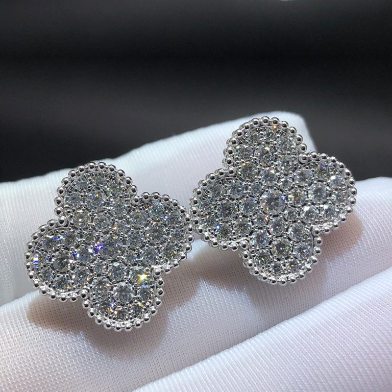 Radiant and refined, these Van Cleef & Arpels VCA Magic Alhambra full pave diamonds earrings are exquisitely crafted in luminous 18k white gold. Each iconic quatrefoil motif is fully pavé-set with brilliant-cut diamonds, creating a breathtaking surface of sparkle framed by the Maison’s signature beaded gold edge. Elegant and timeless, these earrings embody the Magic Alhambra collection’s celebration of luck, light, and enduring sophistication, making them a perfect choice for both day and evening elegance. Collection: VCA Magic Alhambra Earrings Metal: 18k white gold (Weight approx 20g) Diamonds: 74 diamonds 2.13 carats Motif Size: 20mm x 20mm REFERENCE: VCARN9ZR00 Clasp: […]