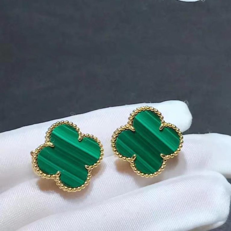 Introducing a stunning pair of Van Cleef & Arpels Magic Alhambra Malachite 3 Motifs 18k Yellow Gold Drop Earrings from Van Cleef & Arpels’ Magic Alhambra collection! These VCA Magic Alhambra earrings feature three four-leaf clover motifs of different sizes, each adorned with malachite inlays and a beaded outer edge. They have post and lever-hinged fittings. Collection: VCA Magic Alhambra 3 Motifs Earrings Metal: 18k yellow gold (Weight approx 19.2g) Gemstones: malachite Earring total length: 6.80 cm Motif size: 15mm and 20mm clovers motifs REFERENCE: VCARO2AG00 Clasp: Clip back with detachable stem in 18K yellow gold, option to remove or […]