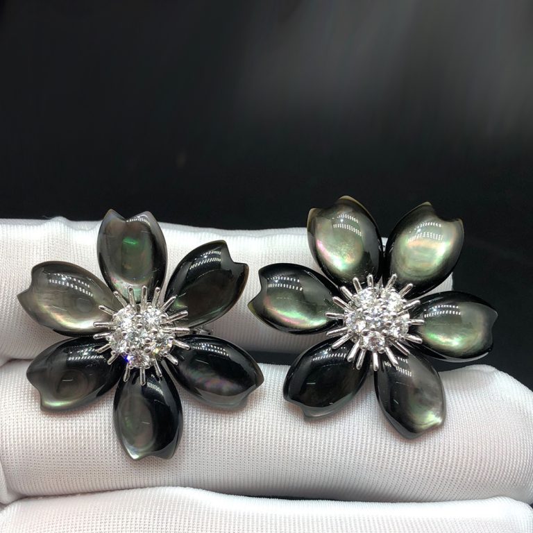 You are viewing a classic & rare pair of Van Cleef & Arpels Magic Alhambra Earrings 2 Motifs 18k Rose Gold with Grey Mother of Pearl and Diamonds. Hands down one of the most beautiful creation from VCA. Loved and sought after for its delicate, feminine and classic look with superb quality Diamonds that light up the room with the most spectacular sparkle & fire. The gray mother of pearl is mesmerizing. Collection: VCA Magic Alhambra 2 Motifs Earrings Metal: 18k rose gold (Weight approx 16.8g) Diamonds: 24 diamonds 0.96ct Gemstones: 2 grey mother of pearl Earrings Height: 5.20cm Motif […]