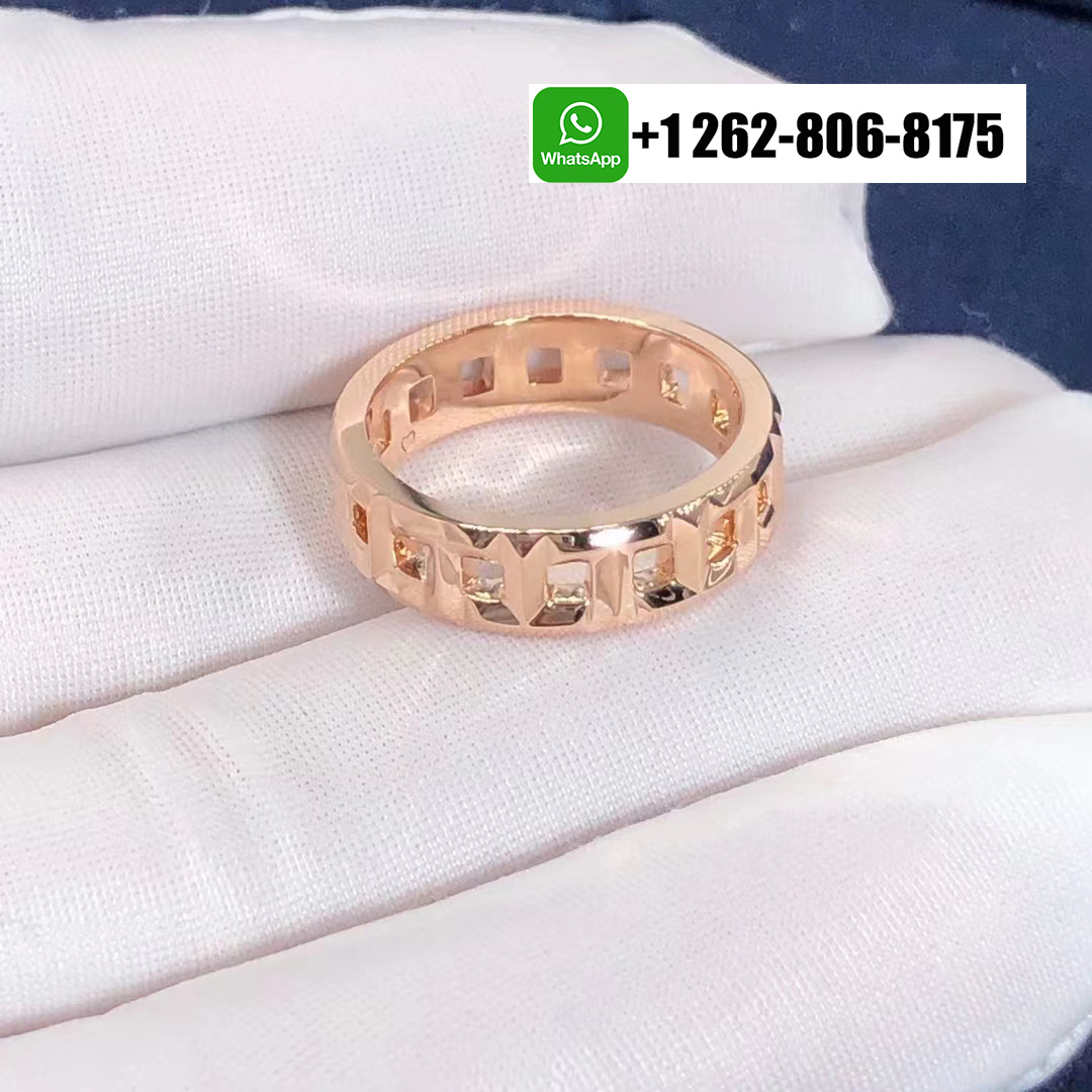 Perfect piece to wear alone or stack. The Tiffany T collection is one of the most popular jewelry lines from Tiffany and Co. Each piece comes with a distinct shape that displays or re interprets the T symbol. This Tiffany T True wide ring is made of 18k rose gold and the design is formed by the letter T placed in an alternating pattern. It fits like its been made for you.
