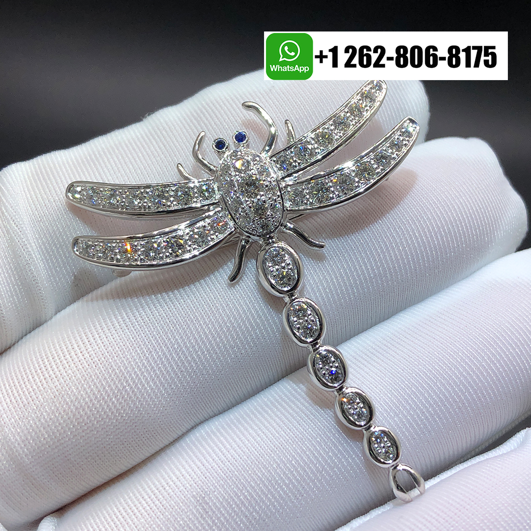 Tiffany & Co. Dragonfly Platinum Pave Diamond Sapphire Pin Brooch