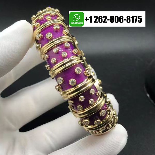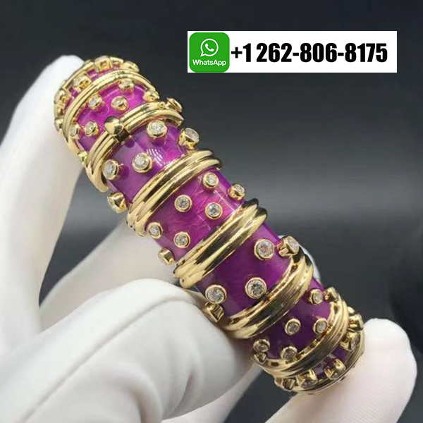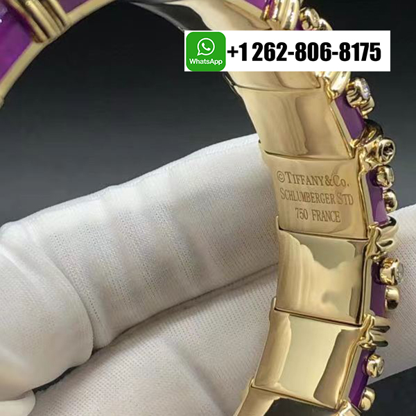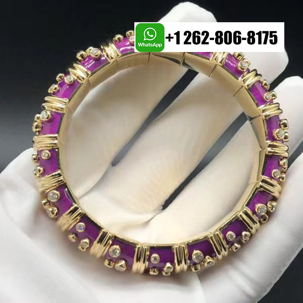 Home / Tiffany Jewelry / Tiffany & Co. Schlumberger 18k Yellow Gold Diamond Rare Lilac Enamel Bangle Bracelet