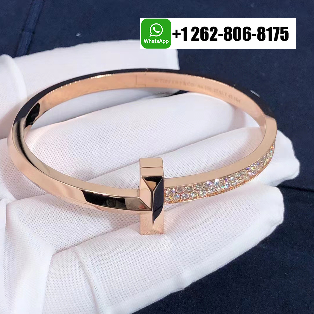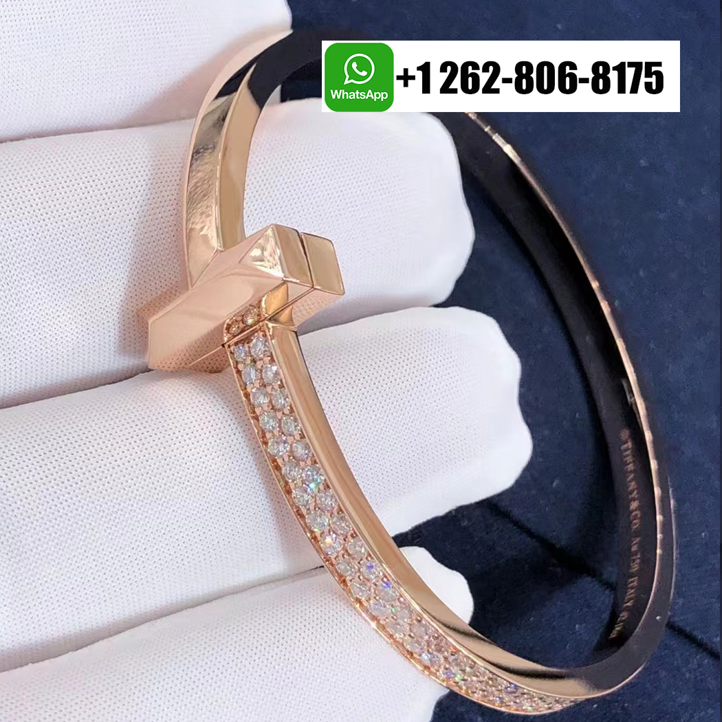 Home / Tiffany Jewelry / Tiffany & Co. T 18k Rose Gold T1 Wide Diamond Hinged Bangle Bracelet 67792831