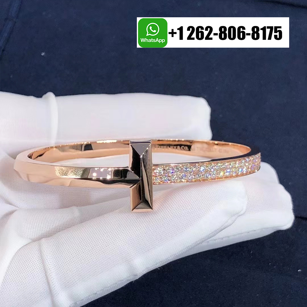 Tiffany & Co. T 18k Rose Gold T1 Wide Diamond Hinged Bangle Bracelet 67792831