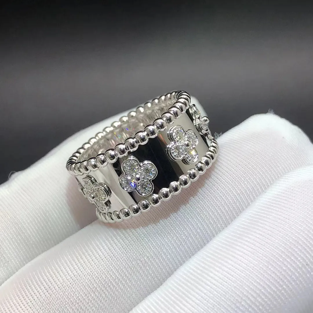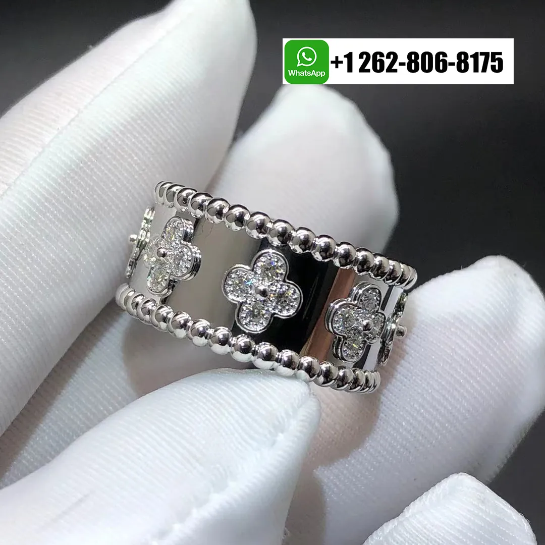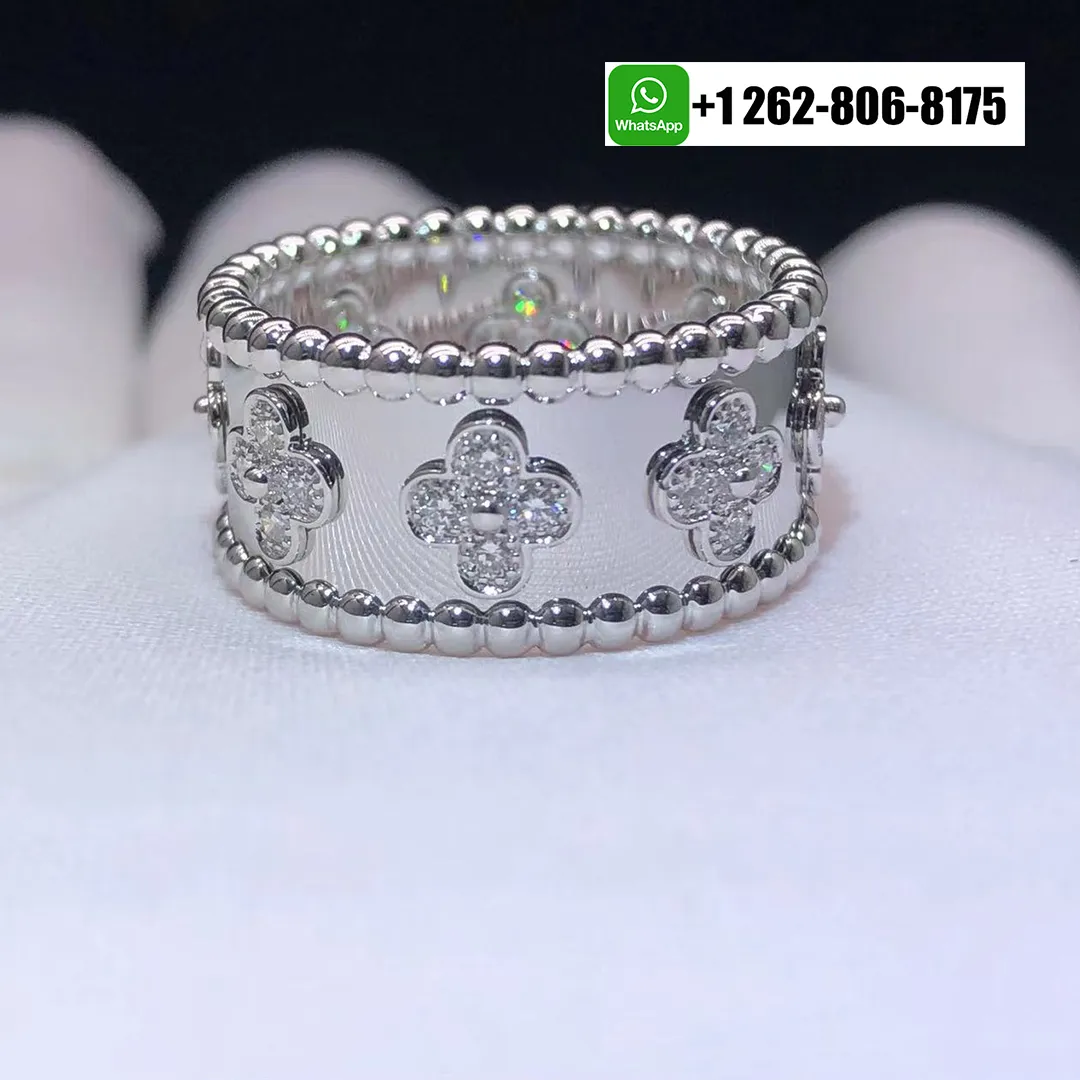Van Cleef & Arpels 18k White Gold Perlée Clovers Diamond Medium Model Ring VCARO9LP00