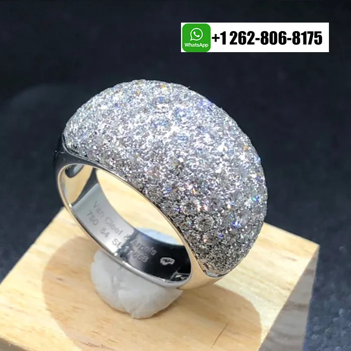 - Van Cleef & Arpels Perlée Diamonds Ring 1 Row in 18k White Gold VCARP4E200