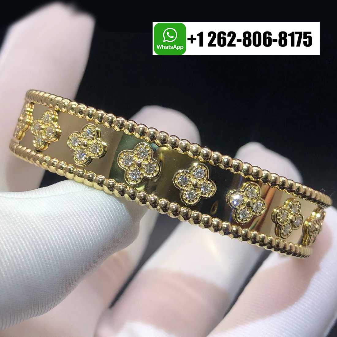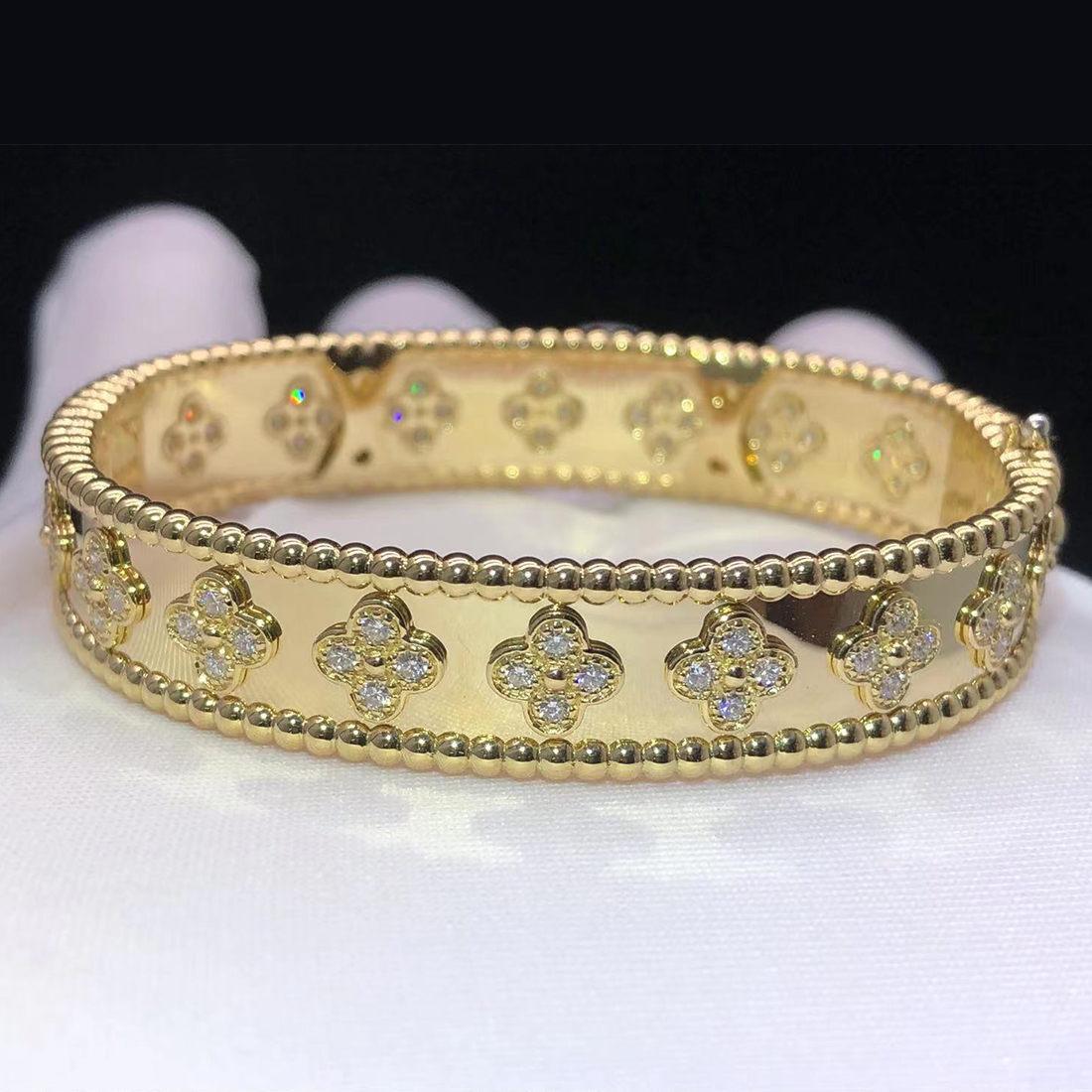 100% exactly same as authentic VCA Perlée Clover Diamonds Bracelet, Natural Gems. You get what you see! We guarantee everything we sell !