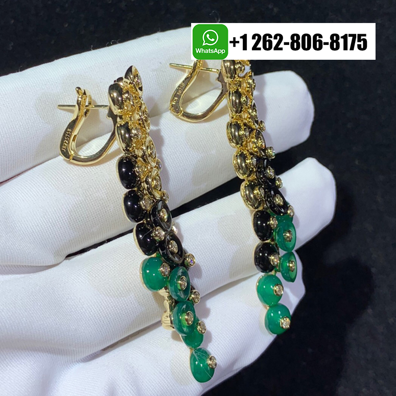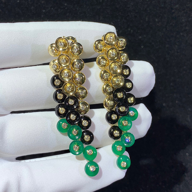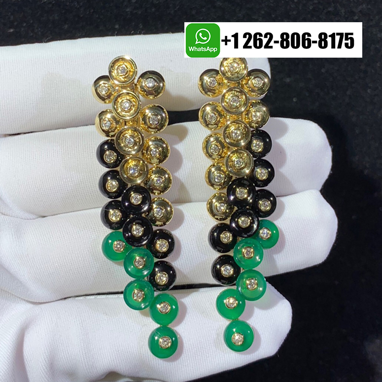 Van Cleef & Arpels Bouton d’or Chrysoprase, Diamond, Onyx Earrings 18k Yellow Gold VCARO77200