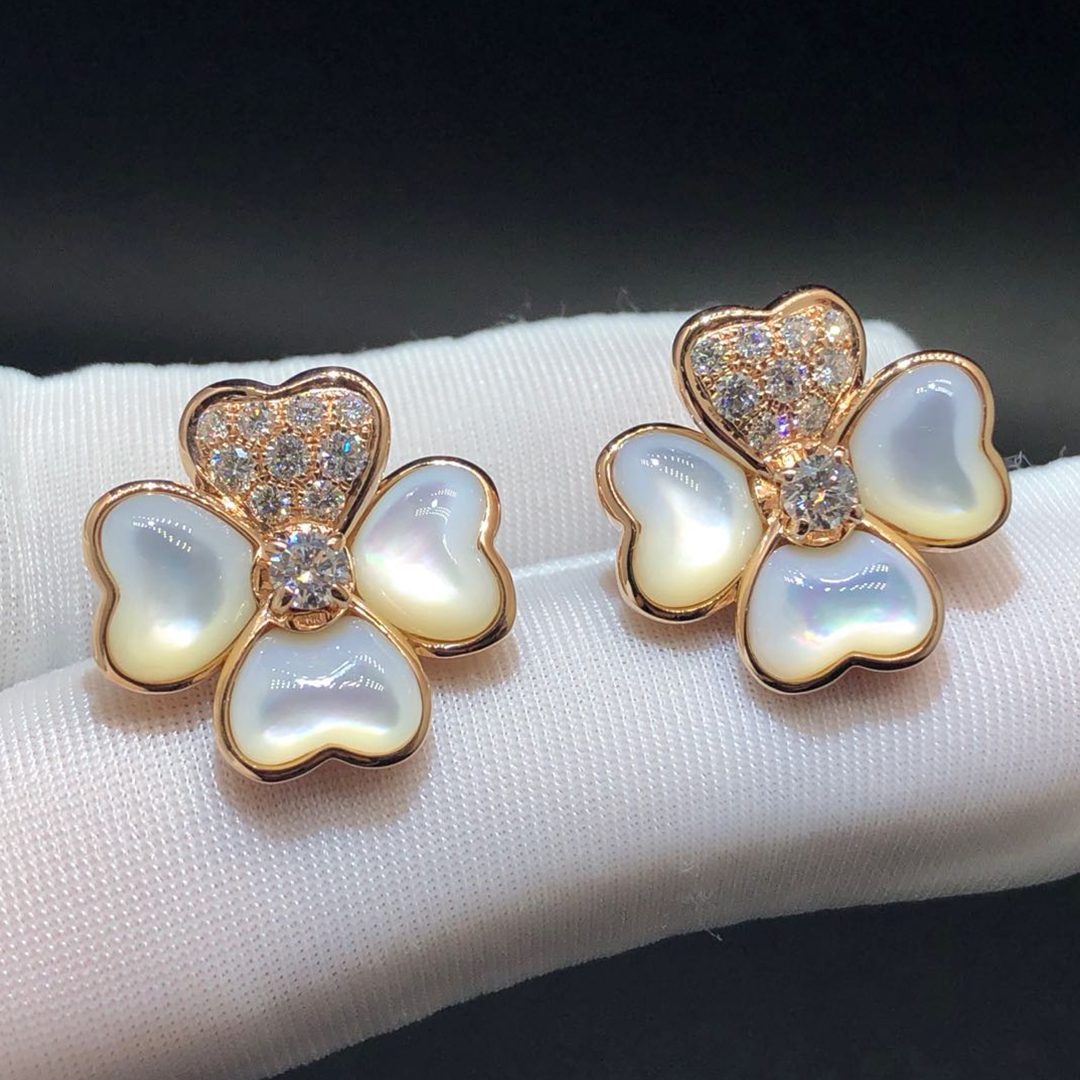Inspired by the harmony of nature, the Van Cleef & Arpels Cosmos Earrings, Small Model showcase the Maison’s refined floral aesthetic. Crafted in luminous 18k rose gold, each earring features softly contoured mother-of-pearl petals with a delicate iridescent glow. A heart-shaped motif paved with brilliant-cut diamonds adds gentle sparkle, while a single diamond at the center enhances depth and radiance. Elegant yet understated, these earrings offer a timeless expression of femininity, perfect for both everyday wear and special occasions.