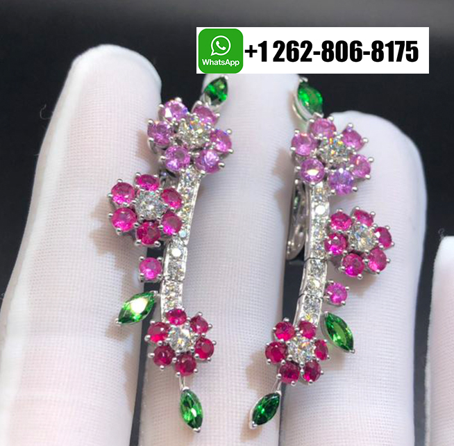 Home / Van Cleef & Arpels / Van Cleef & Arpels Earrings / Van Cleef & Arpels Folie des Pres 18K White Gold Earrings with Diamonds, Pink and Mauve Sapphires, Tsavorite Garnet