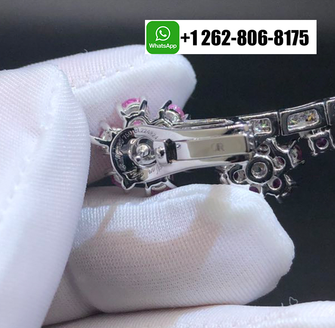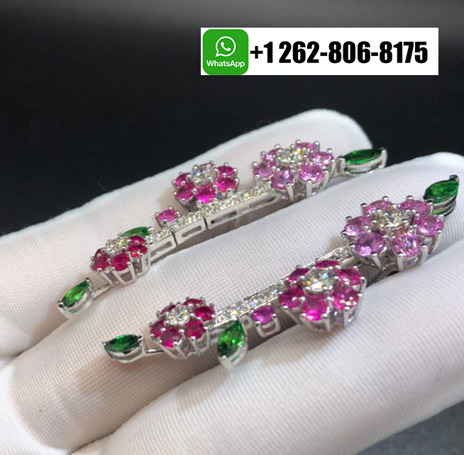Van Cleef & Arpels Folie des Pres 18K White Gold Earrings with Diamonds, Pink and Mauve Sapphires, Tsavorite Garnet