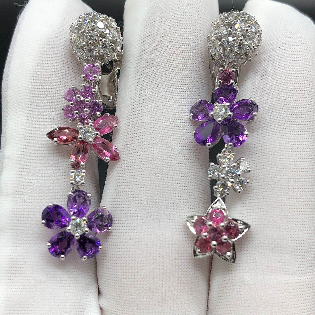 Van Cleef & Arpels Folie des Prés Earrings with Pink and Mauve Sapphires in 18k White Gold VCARP05I00