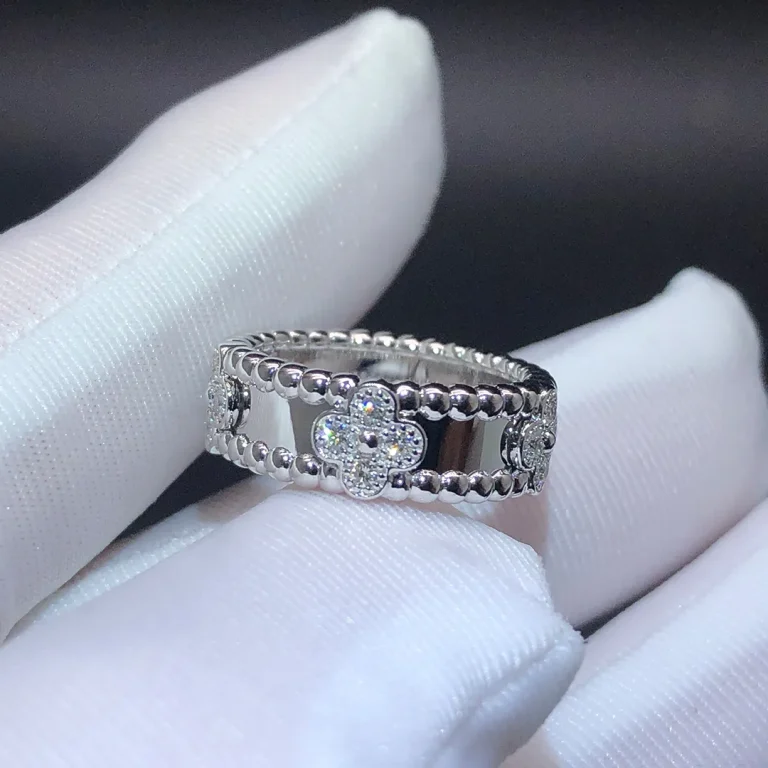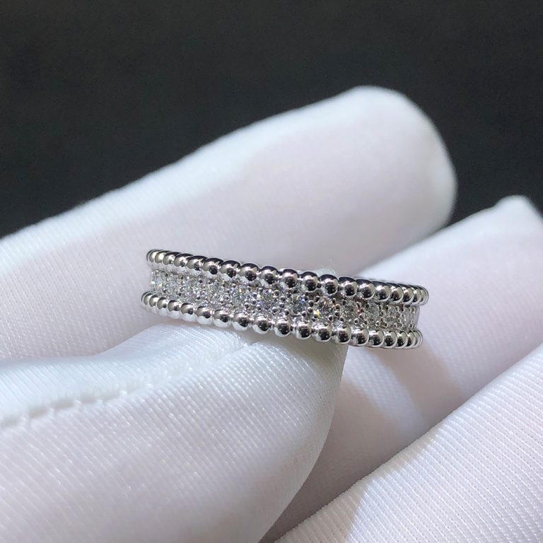 - Van Cleef & Arpels Perlée Diamonds Ring 1 Row in 18k White Gold VCARP4E200