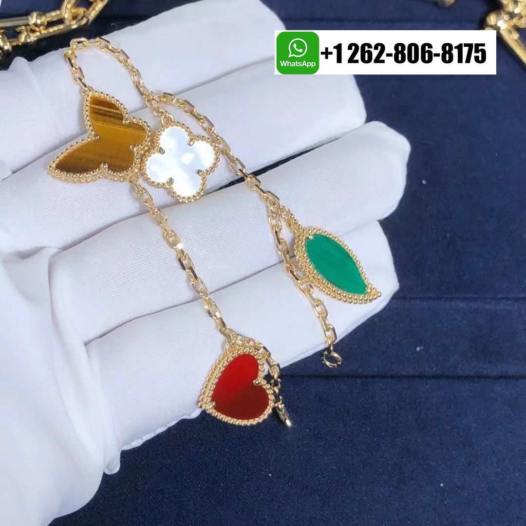 - Van Cleef & Arpels Magic Alhambra Malachite 5 Motifs 18K Yellow Gold Bracelet