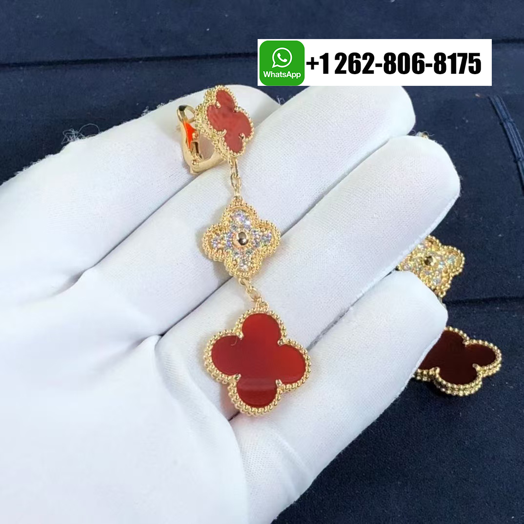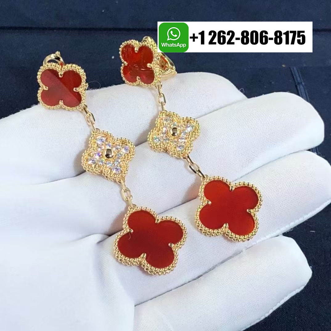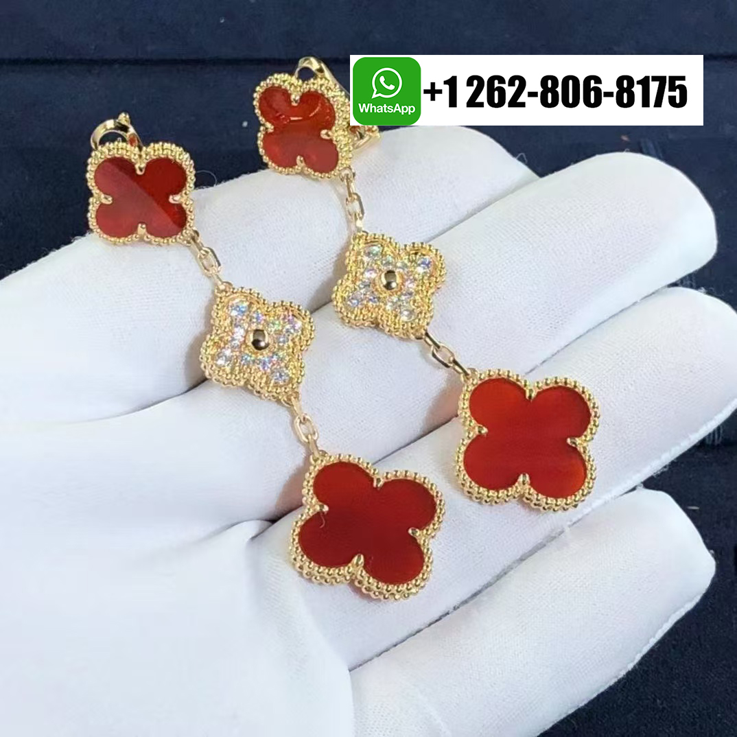 Home / Van Cleef & Arpels / Van Cleef & Arpels Earrings / Van Cleef & Arpels Magic Alhambra 3 Motifs Earrings 18K Yellow Gold with Carnelian and Diamond