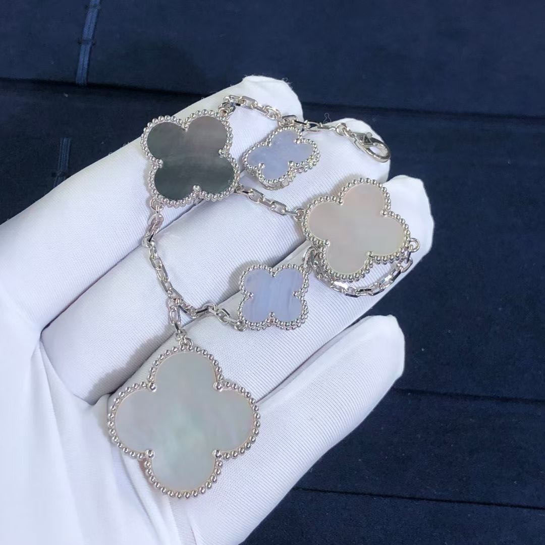 Home / Van Cleef & Arpels / Van Cleef & Arpels Bracelet / Van Cleef & Arpels Magic Alhambra 5 Motifs Chalcedony Mother-of-pearl Bracelet 18k White Gold