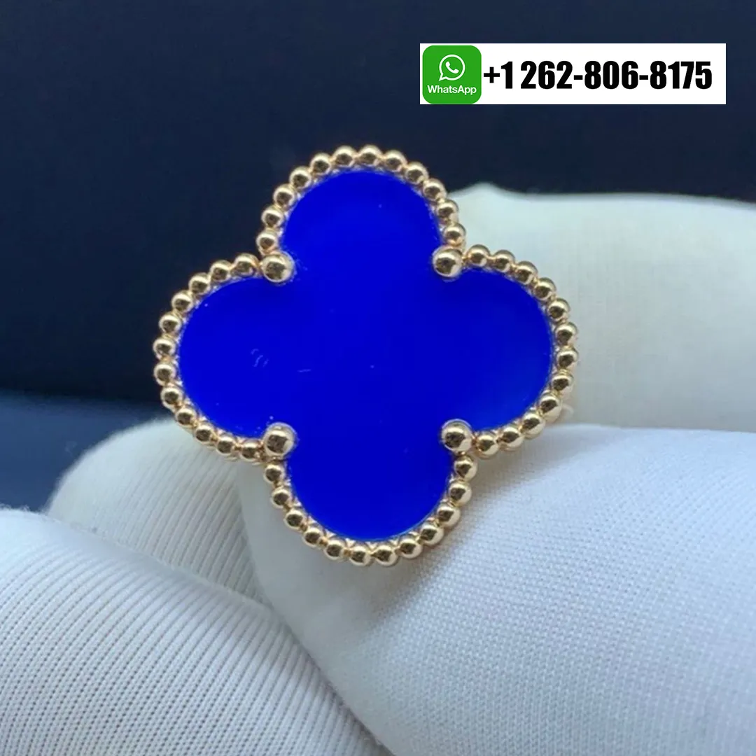 100% exactly same as authentic VCA Magic Alhambra Ring, natural blue agate, Same Hallmark. You get what you see!