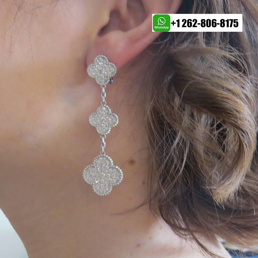 100% exactly same as authentic VCA Magic Alhambra 3 motifs diamond paved Earrings guaranteed. You get what you see!