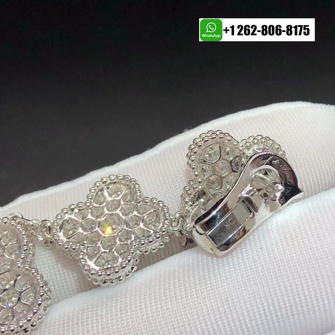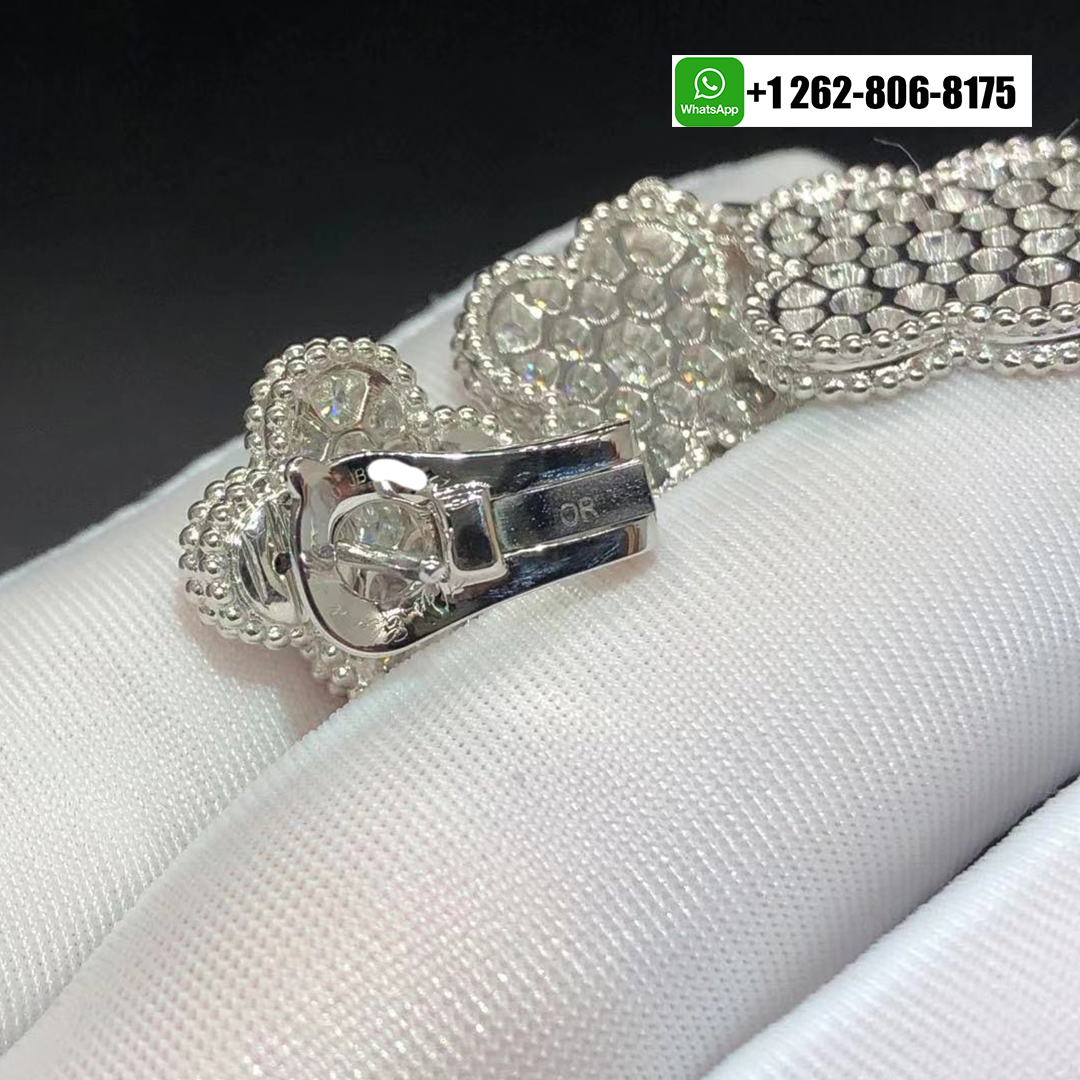 Van Cleef & Arpels Magic Alhambra Full Pave Diamonds 3 Motifs Earrings 18k White Gold VCARN9MR00