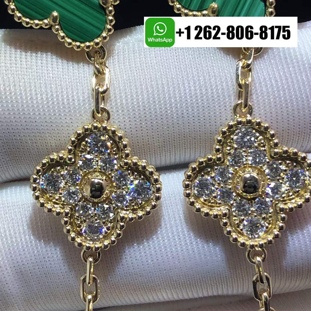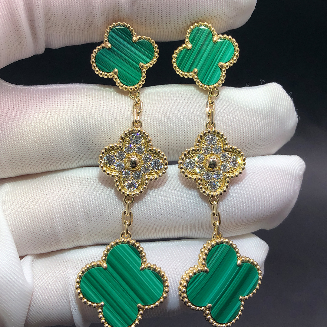 Van Cleef & Arpels Magic Alhambra Malachite and Diamond 3 Motifs Earrings 18k Yellow Gold VCARO9II00