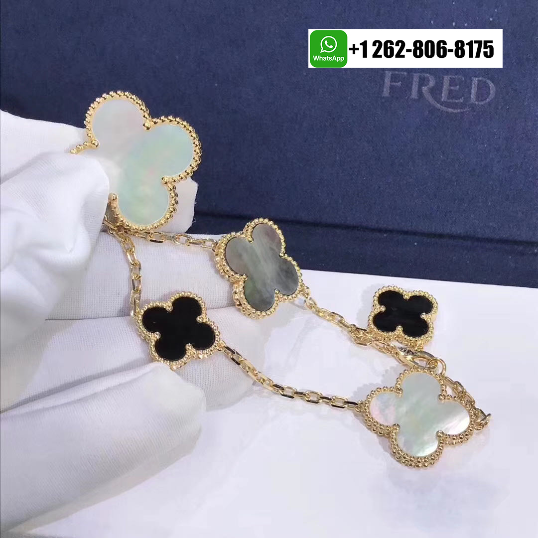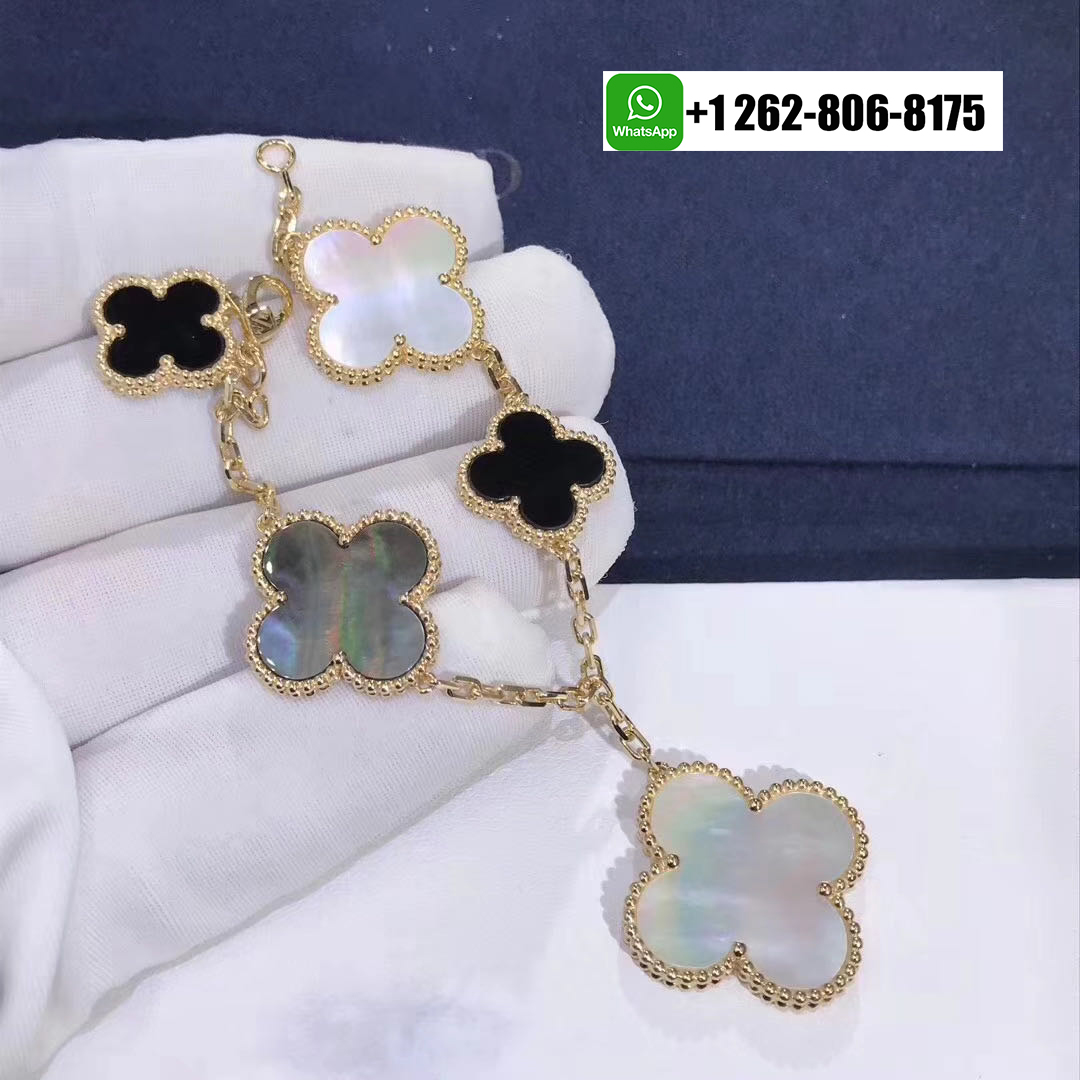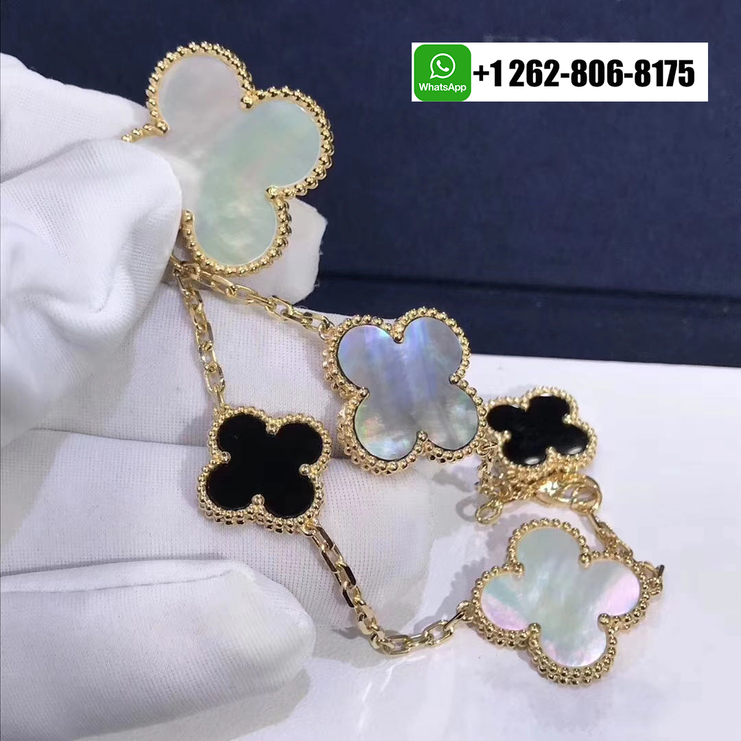 - Van Cleef & Arpels Magic Alhambra Onyx Mother Of Pearl 5 Motif Bracelet 18k Yellow Gold VCARD78700
