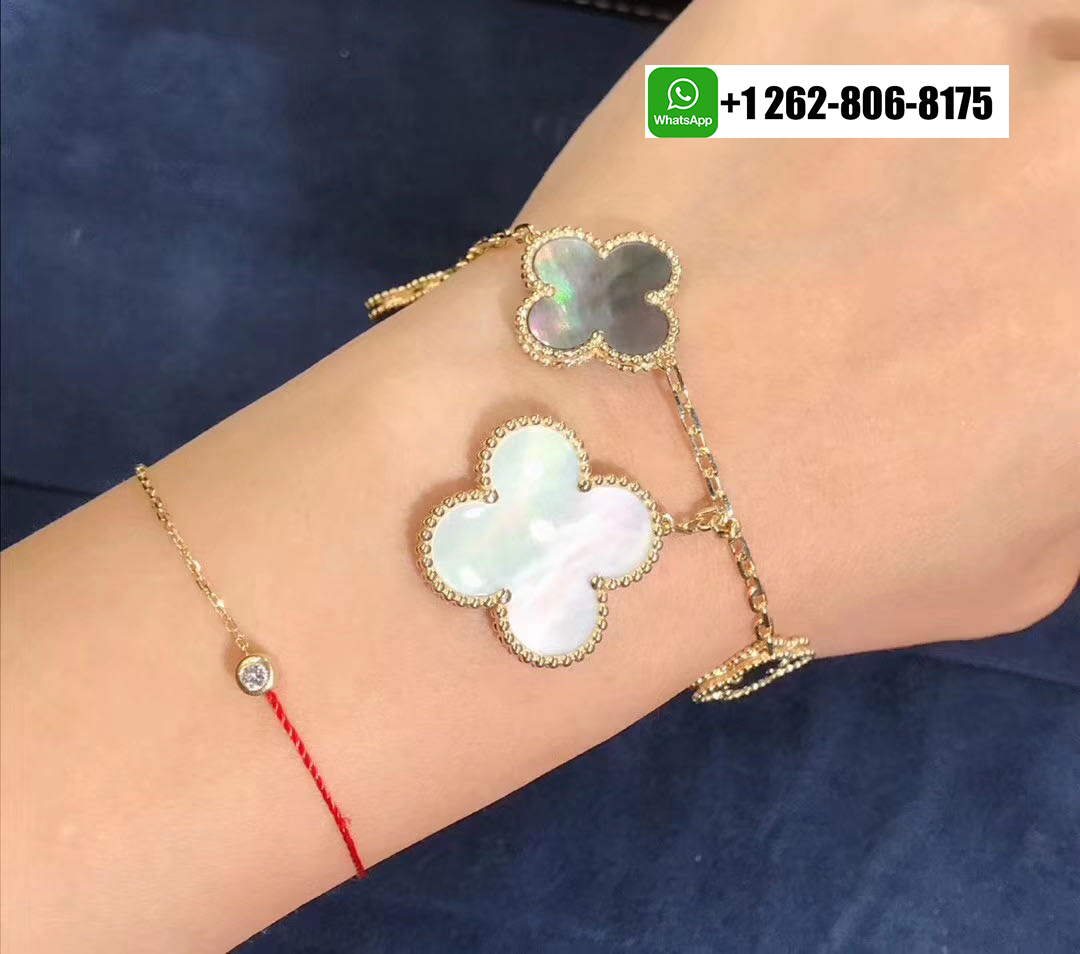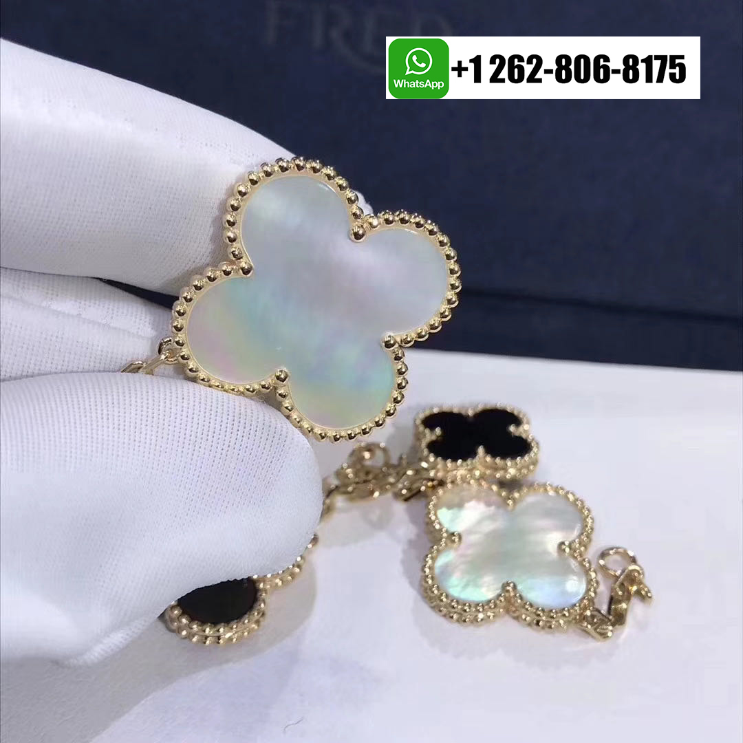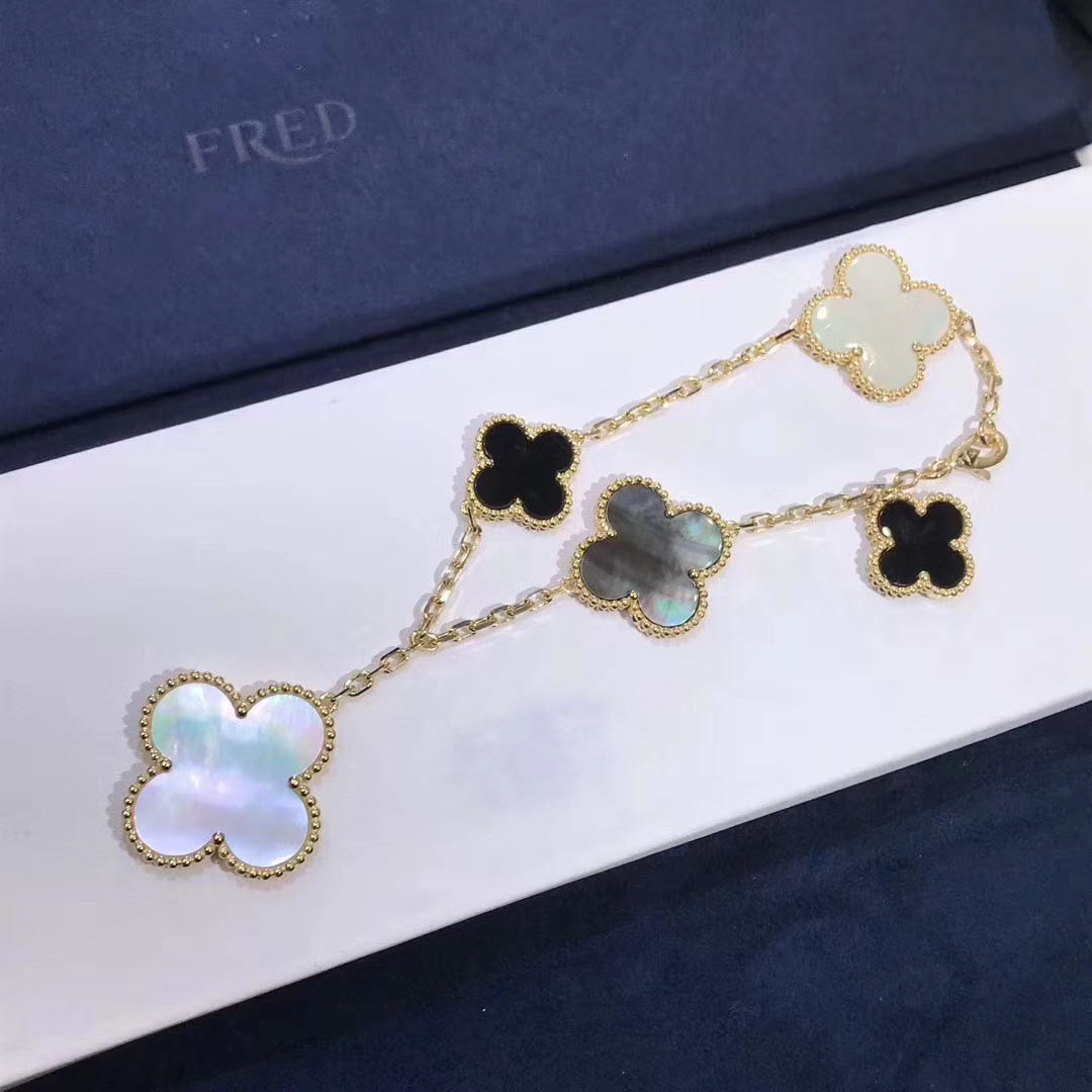 - Van Cleef & Arpels Magic Alhambra Onyx Mother Of Pearl 5 Motif Bracelet 18k Yellow Gold VCARD78700