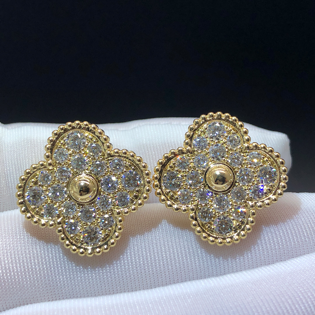 100% exactly same as authentic VCA Magic Alhambra Pave Diamonds Earrings guarantee. You get what you see!