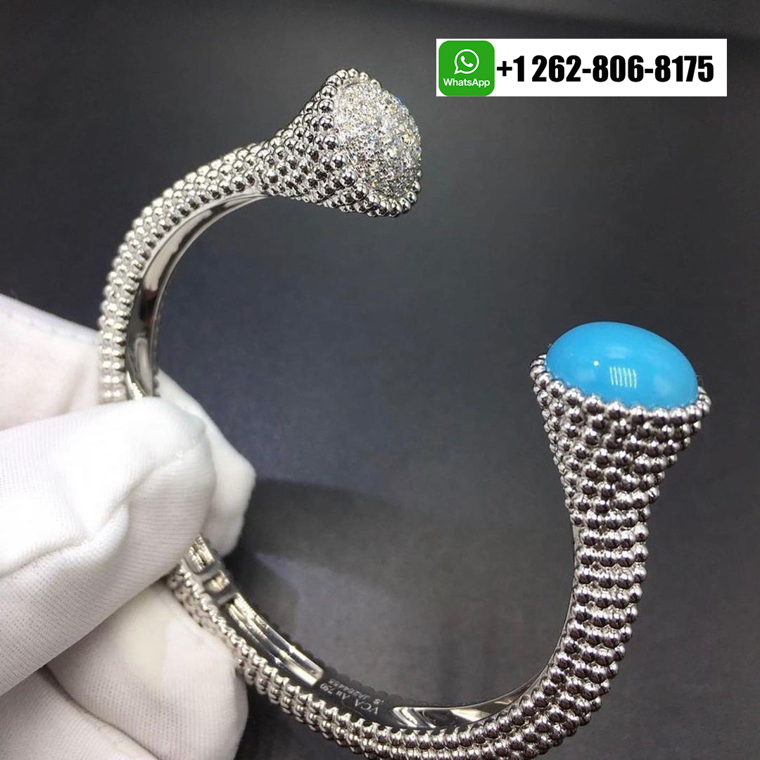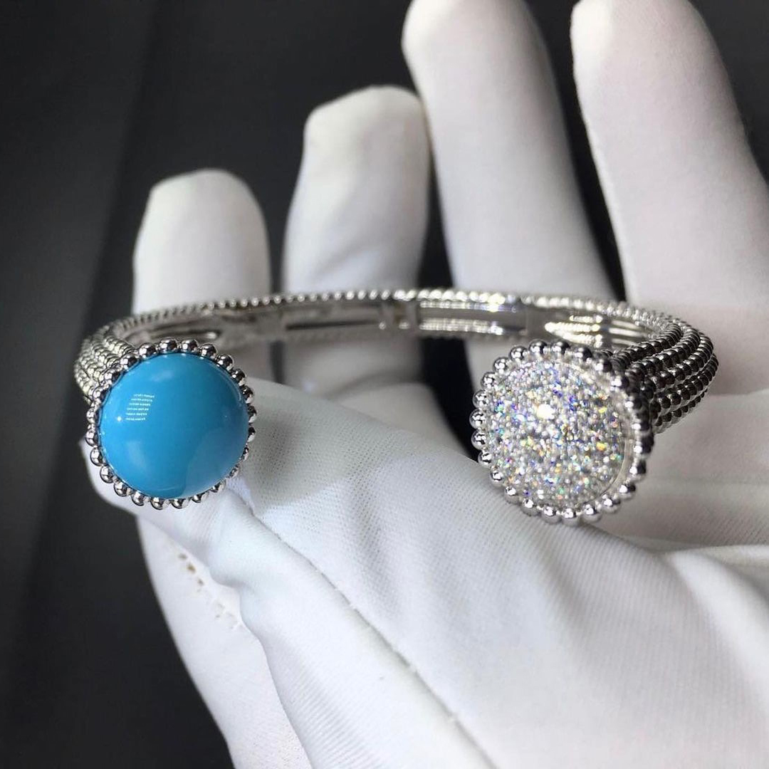Van Cleef & Arpels Perlée Couleurs Diamond and Turquoise Bracelet Large Model 18k White Gold