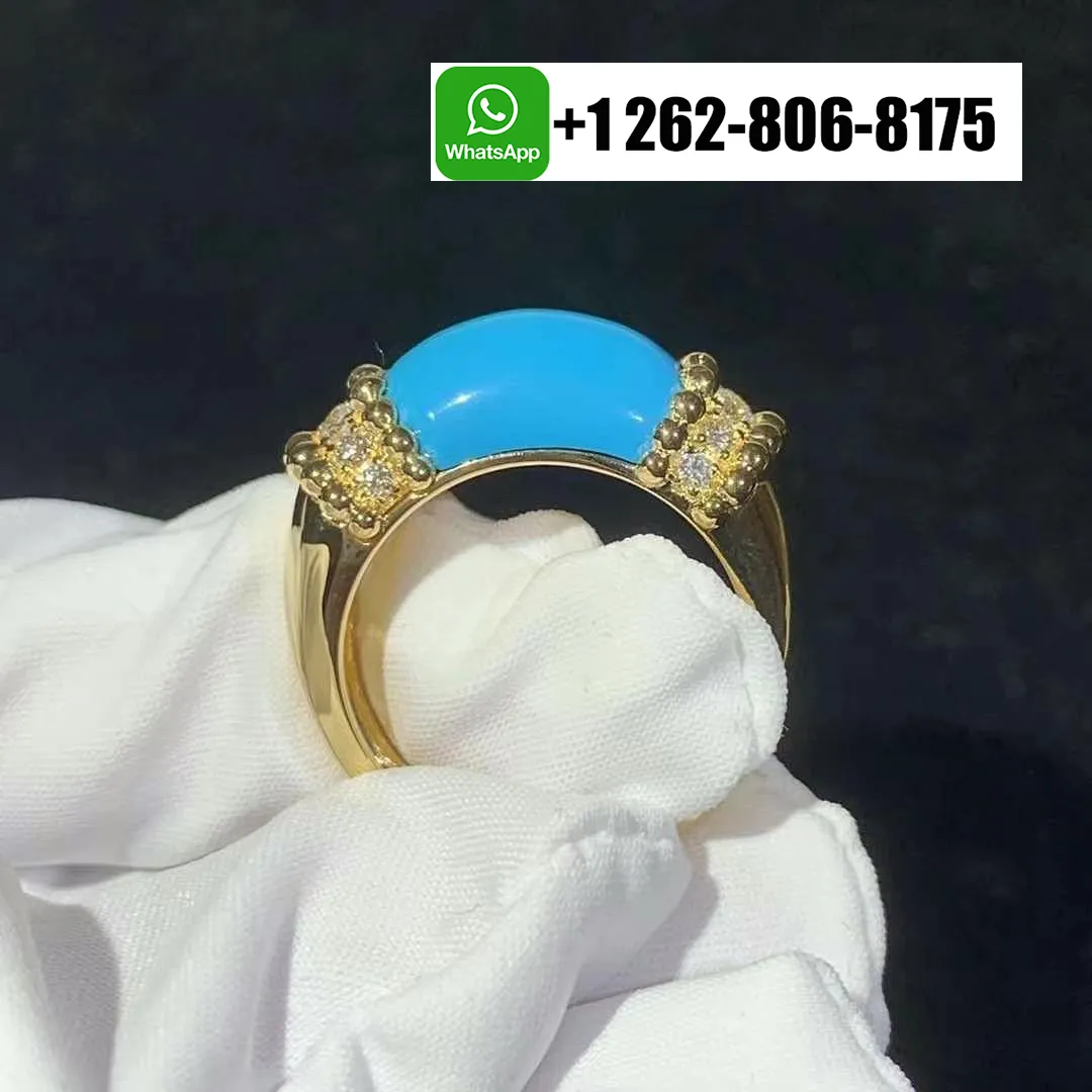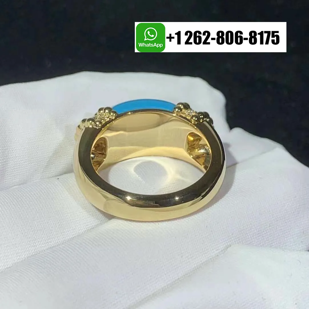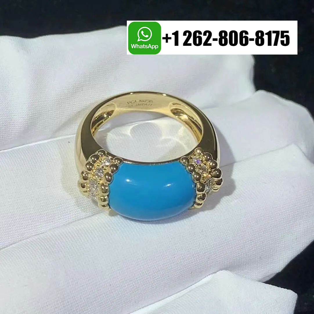 Van Cleef & Arpels Perlée Couleurs Diamond and Turquoise Ring 18K Yellow Gold VCARP7SJ00