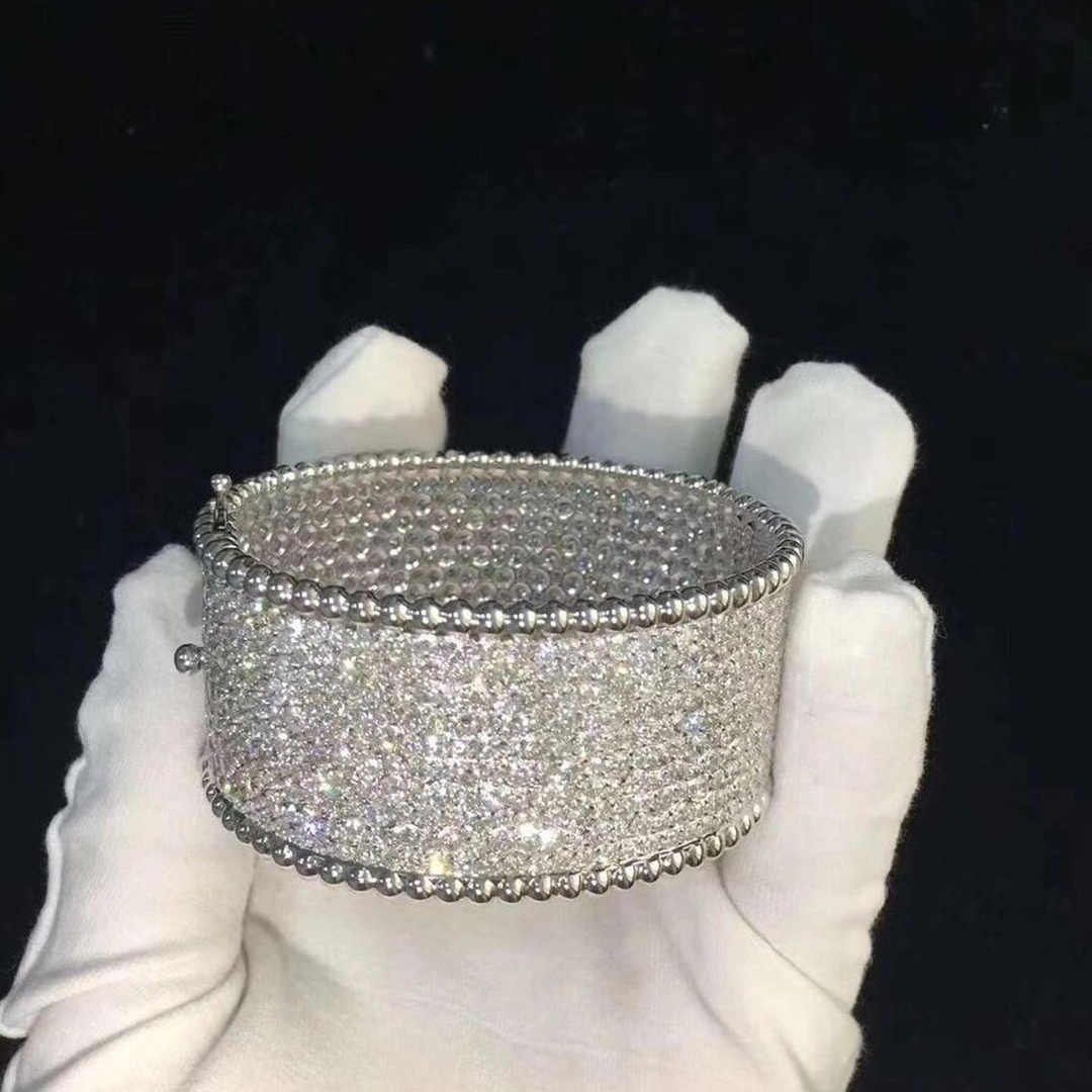 Van Cleef & Arpels Perlee Full Pave Diamond High Jewelry Wide Bracelet 18k White Gold