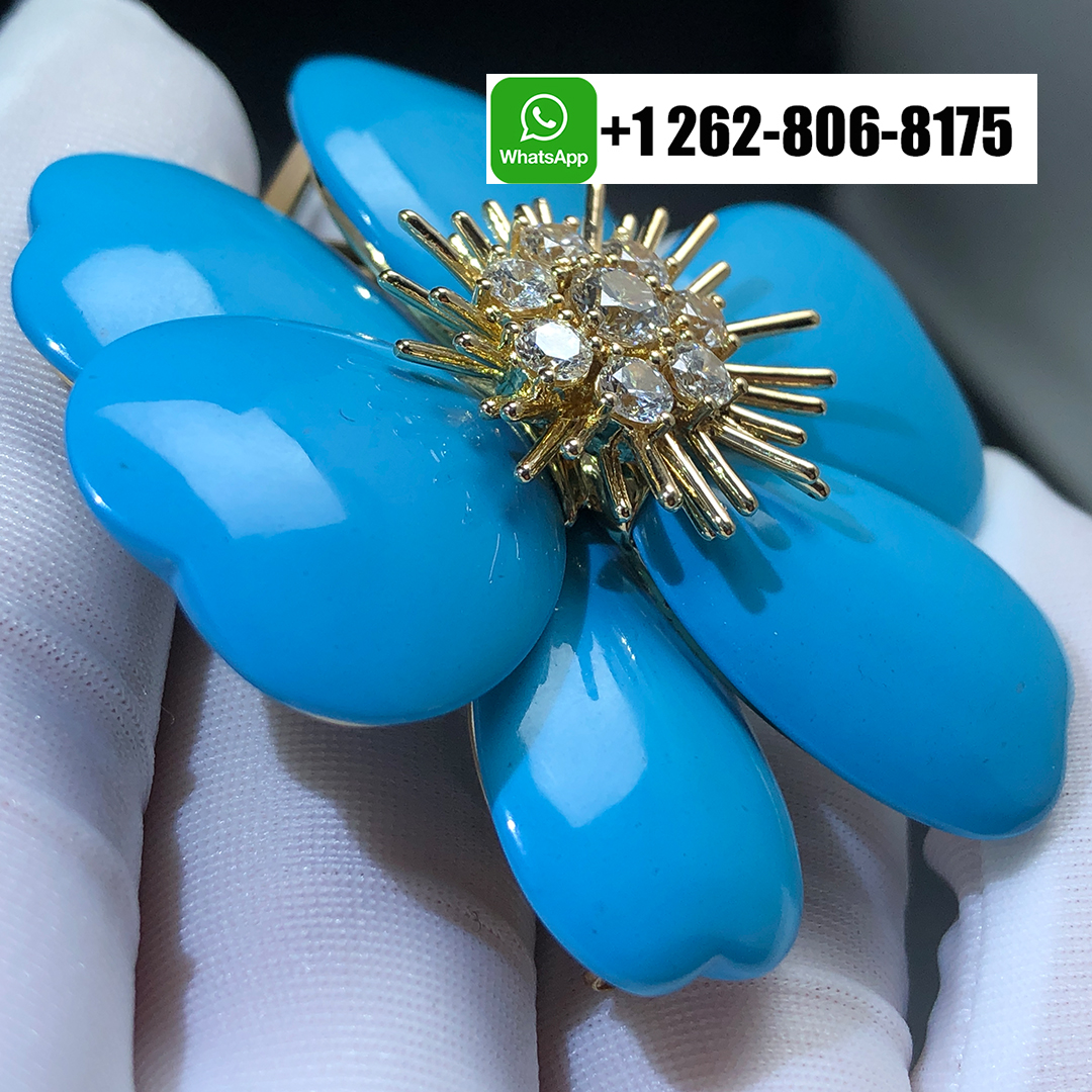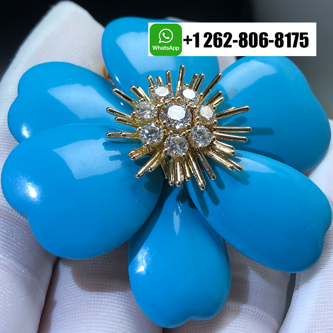 100% exactly same as authentic VCA Rose de Noel Large Model Flower brooch, natural truquoise. You get what you see!