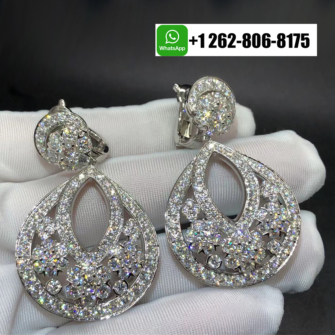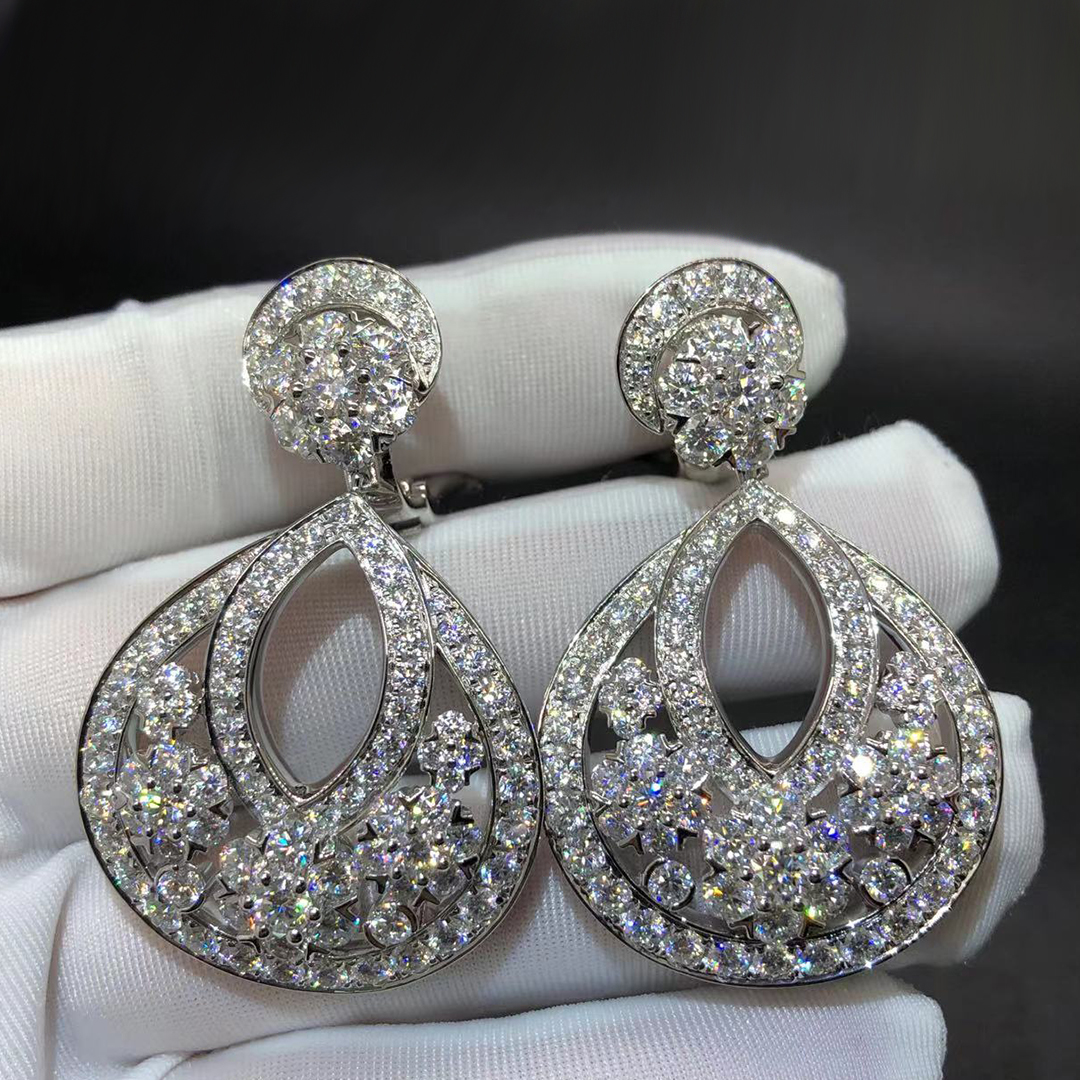 The design showcases remarkable depth and movement, with delicately layered diamond-set elements that evoke the purity and sparkle of freshly fallen snow. As a transformable creation, the earrings offer versatile elegance, allowing them to be worn in multiple ways to suit both grand occasions and refined soirées.