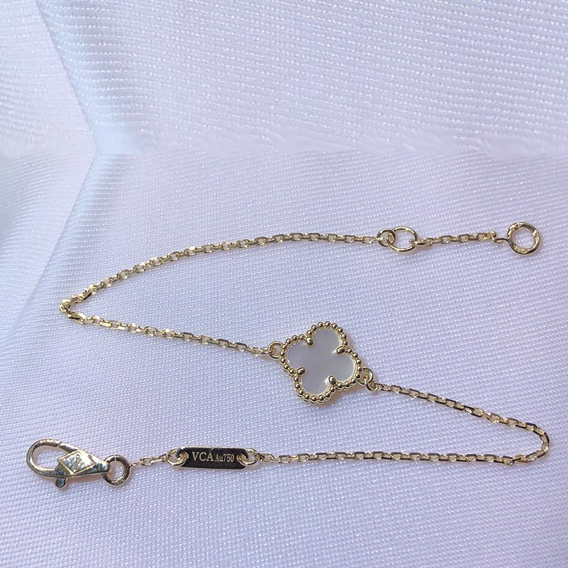 - Van Cleef & Arpels Perlee Sweet Clovers Diamond 18k Yellow Gold Large Model Bracelet VCARPJN000