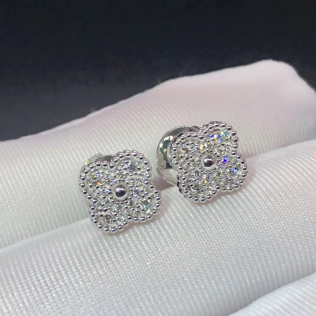 Home / Van Cleef & Arpels / Van Cleef & Arpels Earrings / Van Cleef & Arpels Sweet Alhambra Pave Diamond Earstuds Earrings 18k White Gold VCARO85500