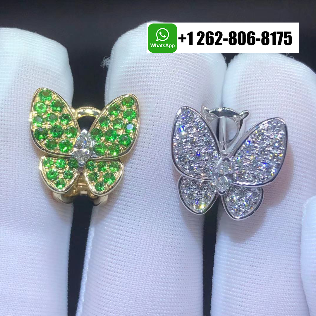 100% exactly same as authentic Van Cleef & Arpels Two Butterfly Earrings. Natural Gems, You get what you see! We guarantee everything we sell !
