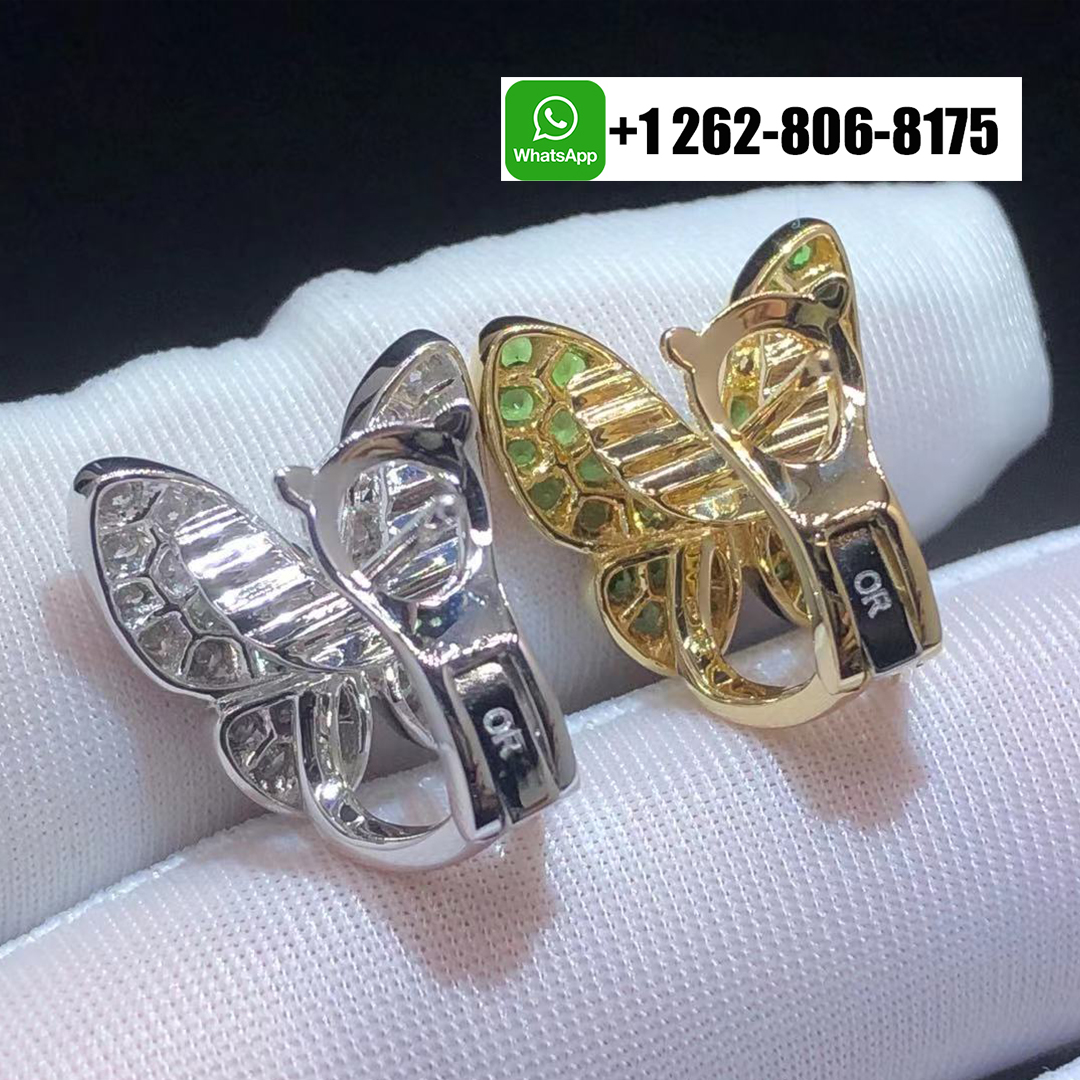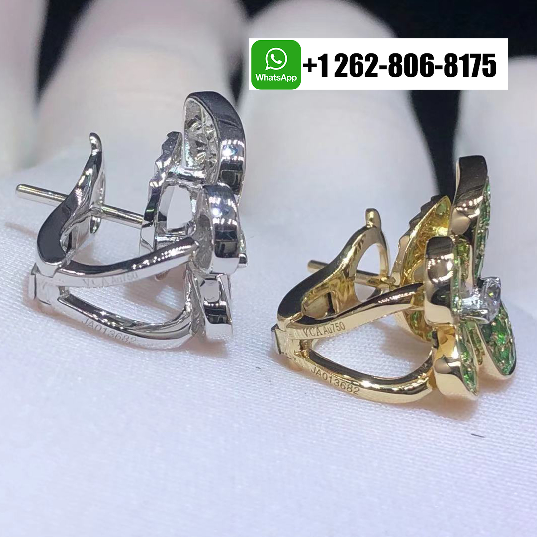 Van Cleef & Arpels Two Butterfly Diamond and Tsavorite Earrings in 18k White & Yellow Gold