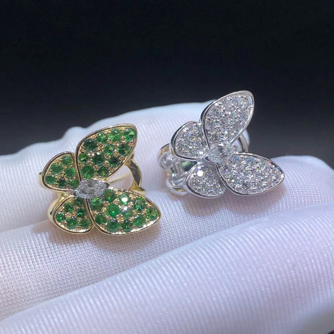 Home / Van Cleef & Arpels / Van Cleef & Arpels Earrings / Van Cleef & Arpels Two Butterfly Diamond and Tsavorite Earrings in 18k White & Yellow Gold