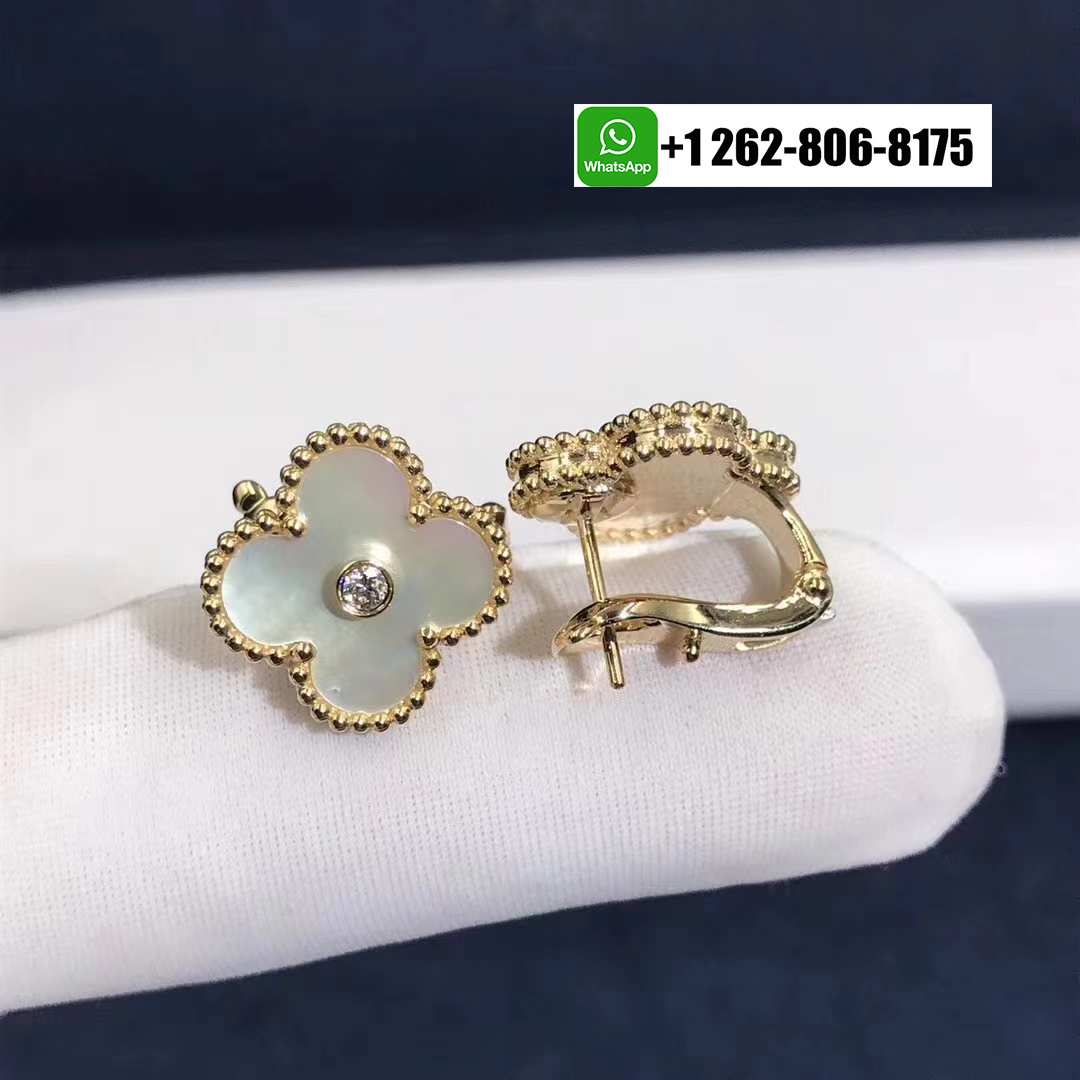 Van Cleef & Arpels Vintage Alhambra 18k Yellow Gold Earrings with Diamond and Mother of Pearl