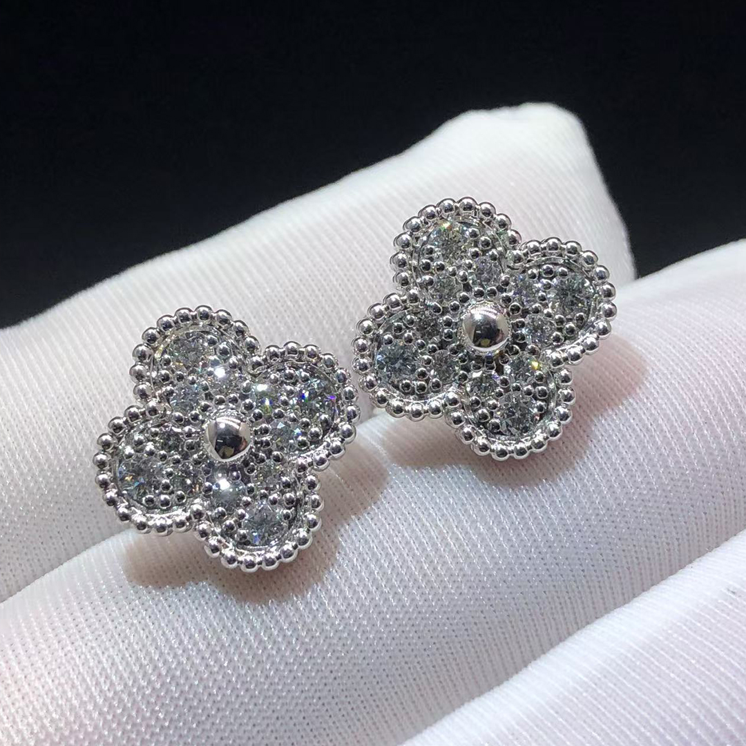 Van Cleef & Arpels Vintage Alhambra Diamond 18k White Gold Earrings VCARA44600