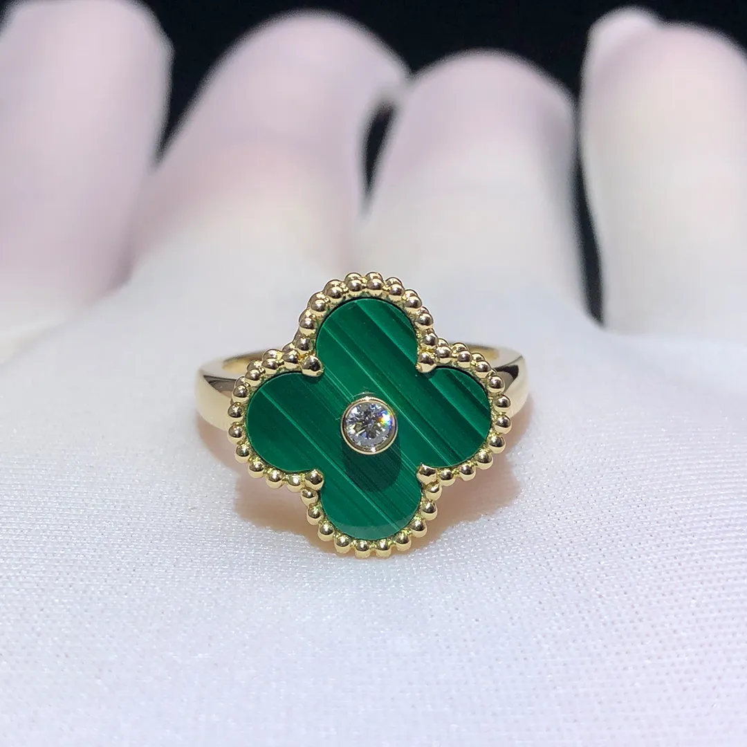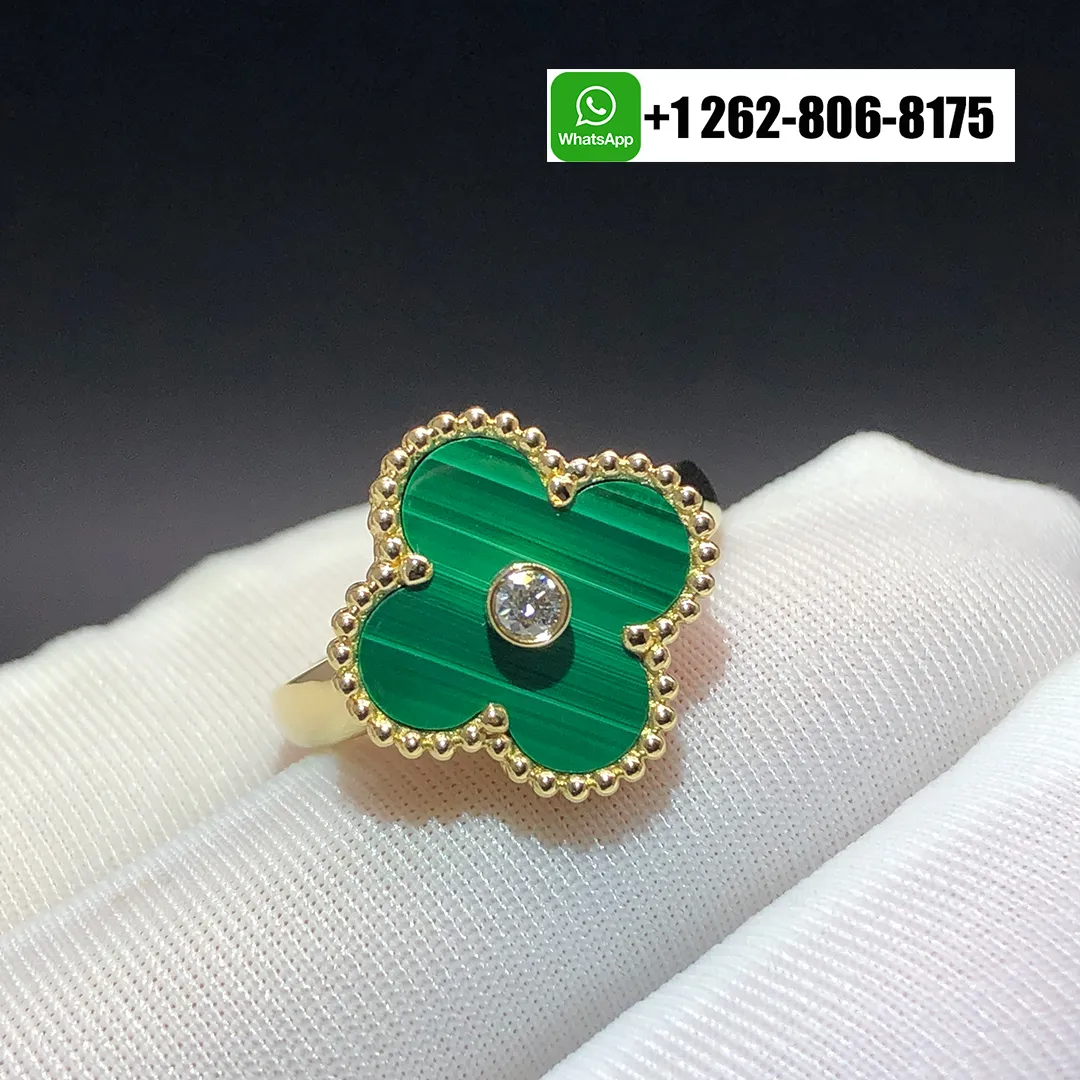 Home / Van Cleef & Arpels / Van Cleef & Arpels Ring / Van Cleef & Arpels Vintage Alhambra Malachite and Diamond 18k Yellow Gold Ring VCARO3QM00